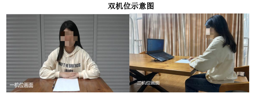1、设备摆放要求:台式电脑或笔记本电脑正向面对考生,复试全程开启, 摄像头正对考生。复试过程中,要求视频中考生界面底端始终不得高于腹部,双手、桌面材料须全程在视频录像范围内。登录“云考场”系统的手机一般作为二机位设备,手机摄像头需摆放在考生侧后方,与考生后背面成 45 度角,能够全程拍摄考生本人和电脑屏幕,复试时全程开启,复试过程中不得使用耳机。