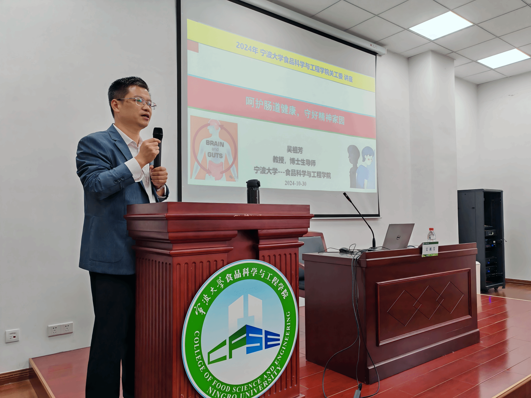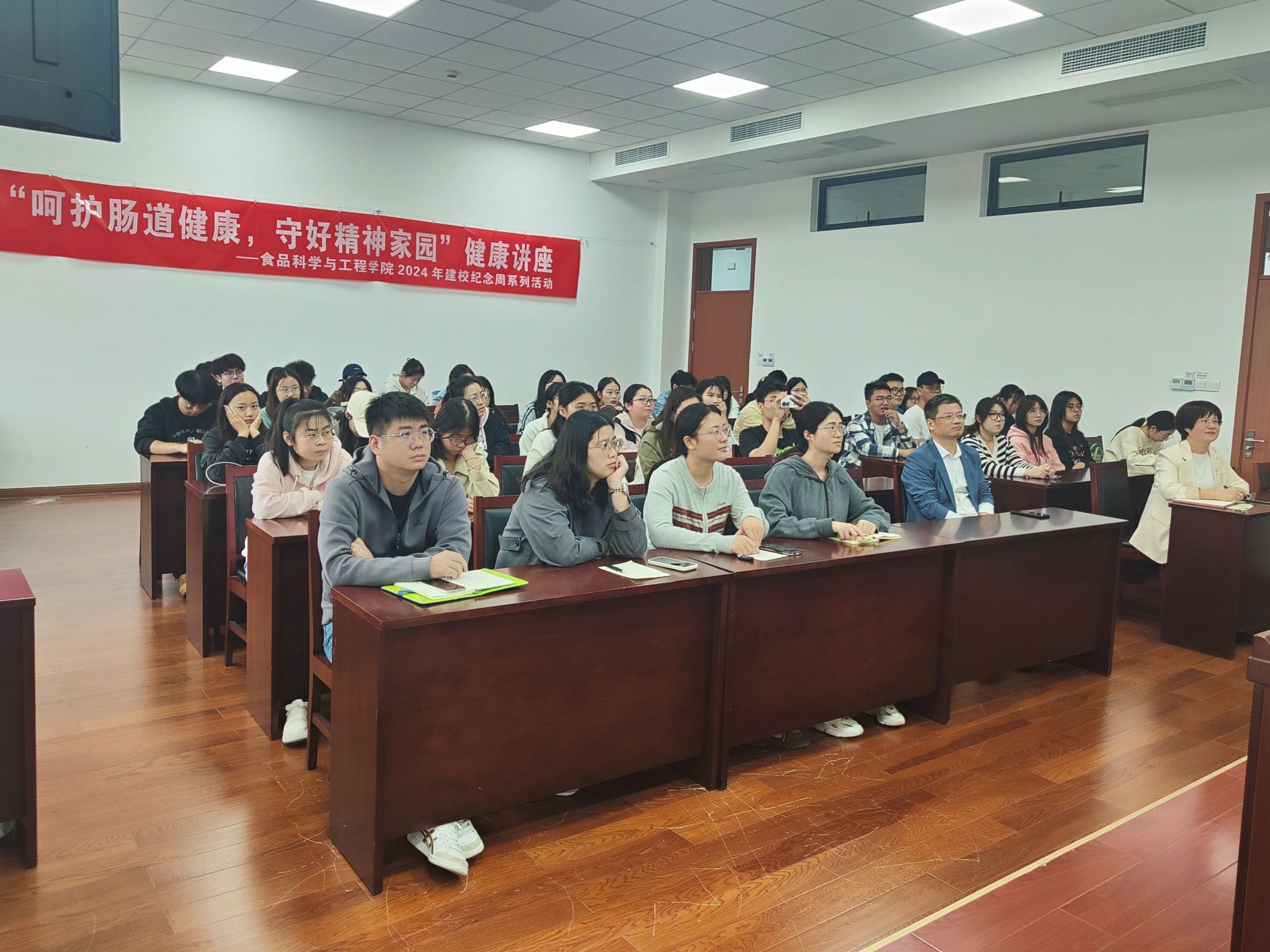 在竺银康楼120室顺利开展“食品与健康”领航系列活动第八场,特邀学院关工委副主任、博士生导师吴祖芳教授,以“呵护肠道健康,守好精神家园”为主题,开展了一场深入浅出的健康科普讲座。本次活动作为学院2024年建校纪念周系列活动以及心理健康知识普及活动之一,由学院党委书记龚文杰主持。学院党委副书记张维、教师及学生代表等60余人参加。