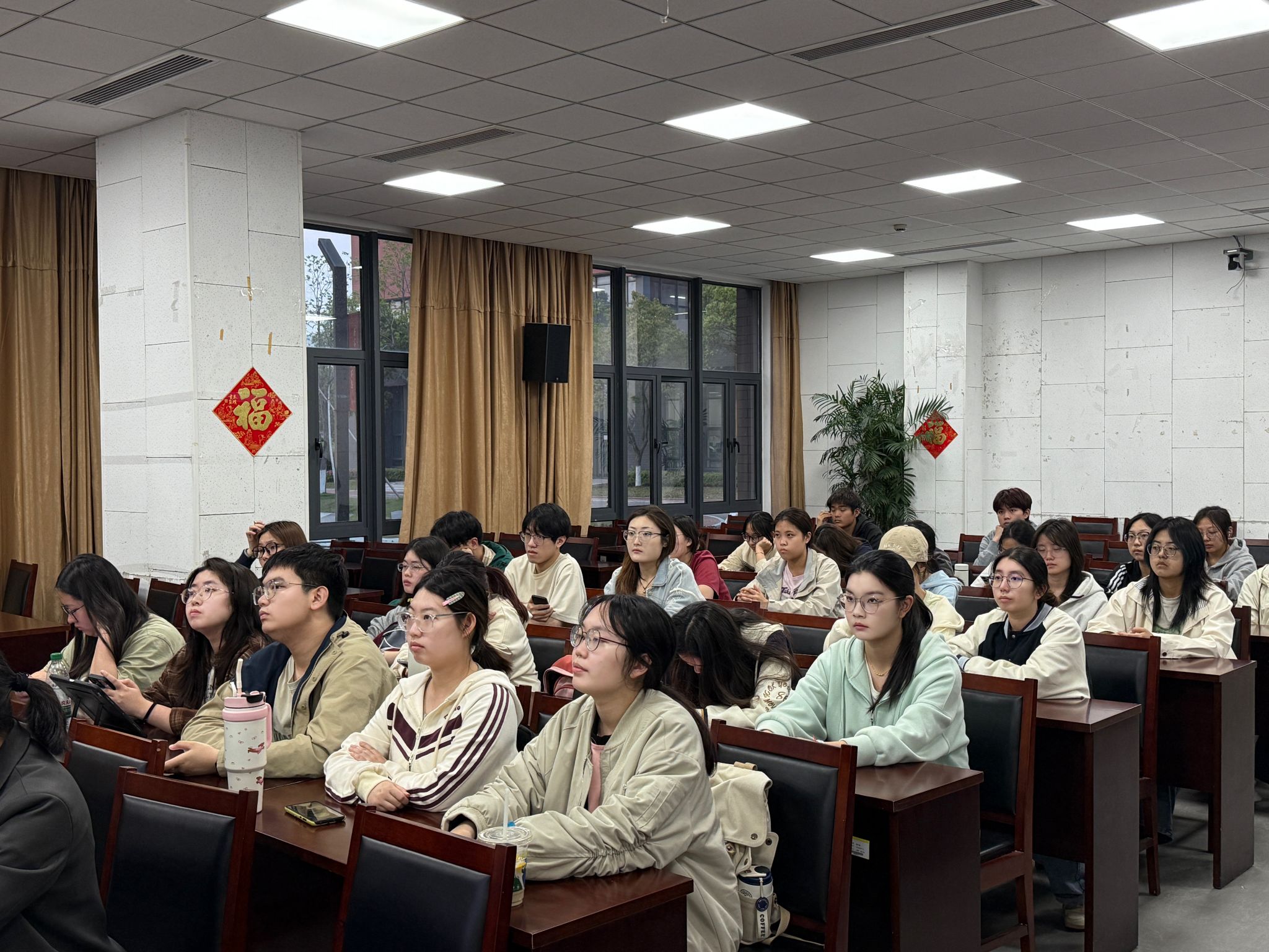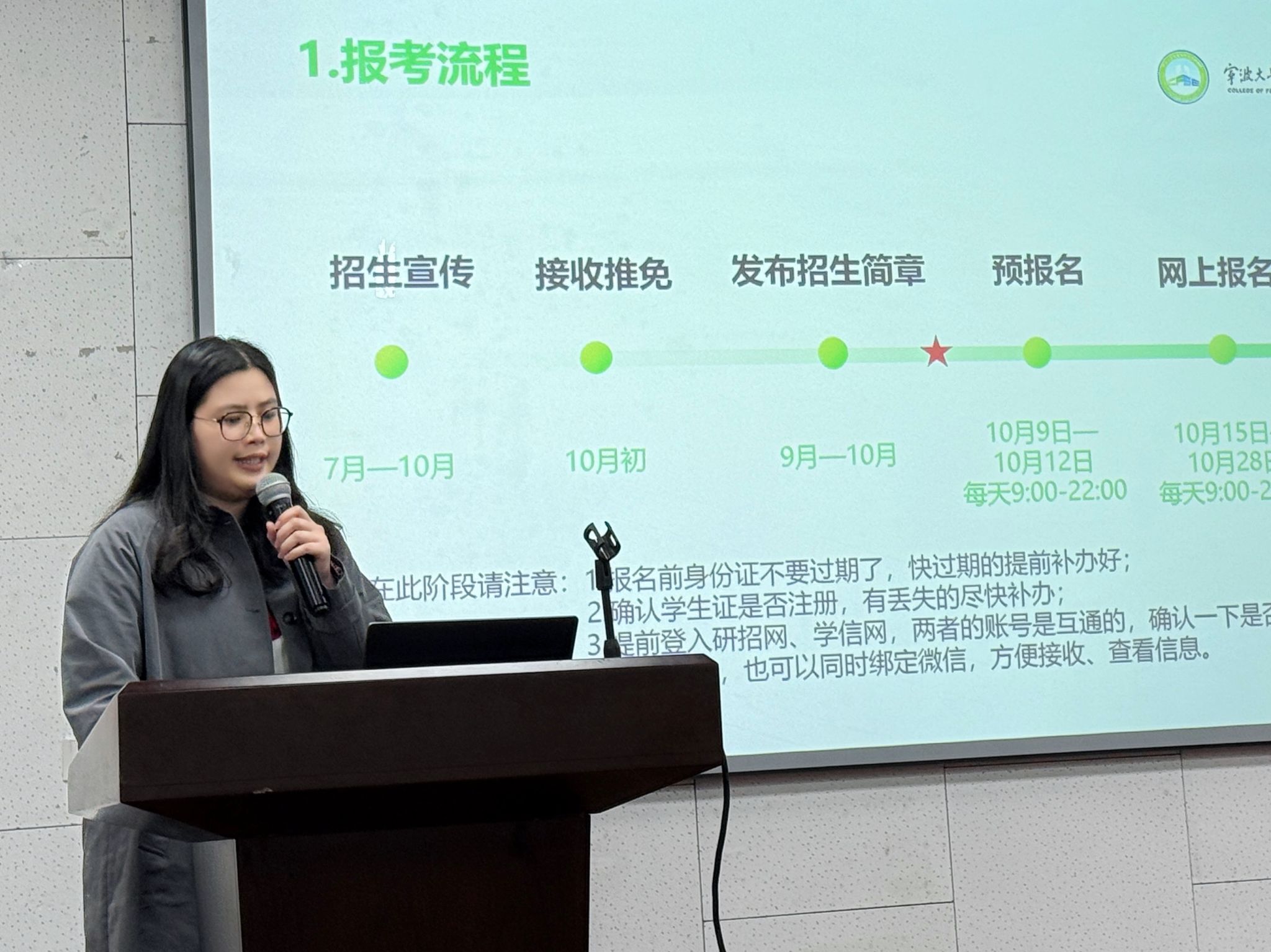 活动现场,学院研究生秘书丁玉惠老师立足学院实际,从四个维度深度解读研究生招生政策,系统梳理考研报考全流程,提醒考生关注招生简章,助力精准规划备考策略。学院学术副院长许凤教授,凭借丰富的教学科研经验,以 “整体介绍 + 自由交流” 形式,结合高校专业排名、学生个体情况,分享权衡地域与学科优势的实用择校方法,鼓励学生积极应对升学挑战。