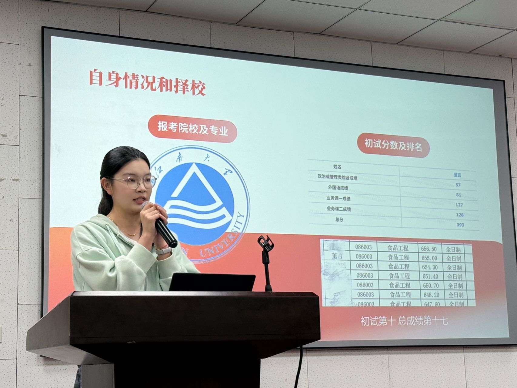 在实战经验分享环节,高分录取江南大学的董言同学分享考研初试经验,强调科学规划,详细介绍分阶段制定复习计划的方法,并提醒同学们避开备考误区。复试高分逆袭上岸江南大学的刘恋同学讲解复试备考策略,指出初试并非终点,复试同样可以扭转局势。徐沛同学作为保研成功的优秀学子,深入解读保研政策,分享个人经历,建议同学们把握夏令营机会,为有意保研的同学指明方向。
