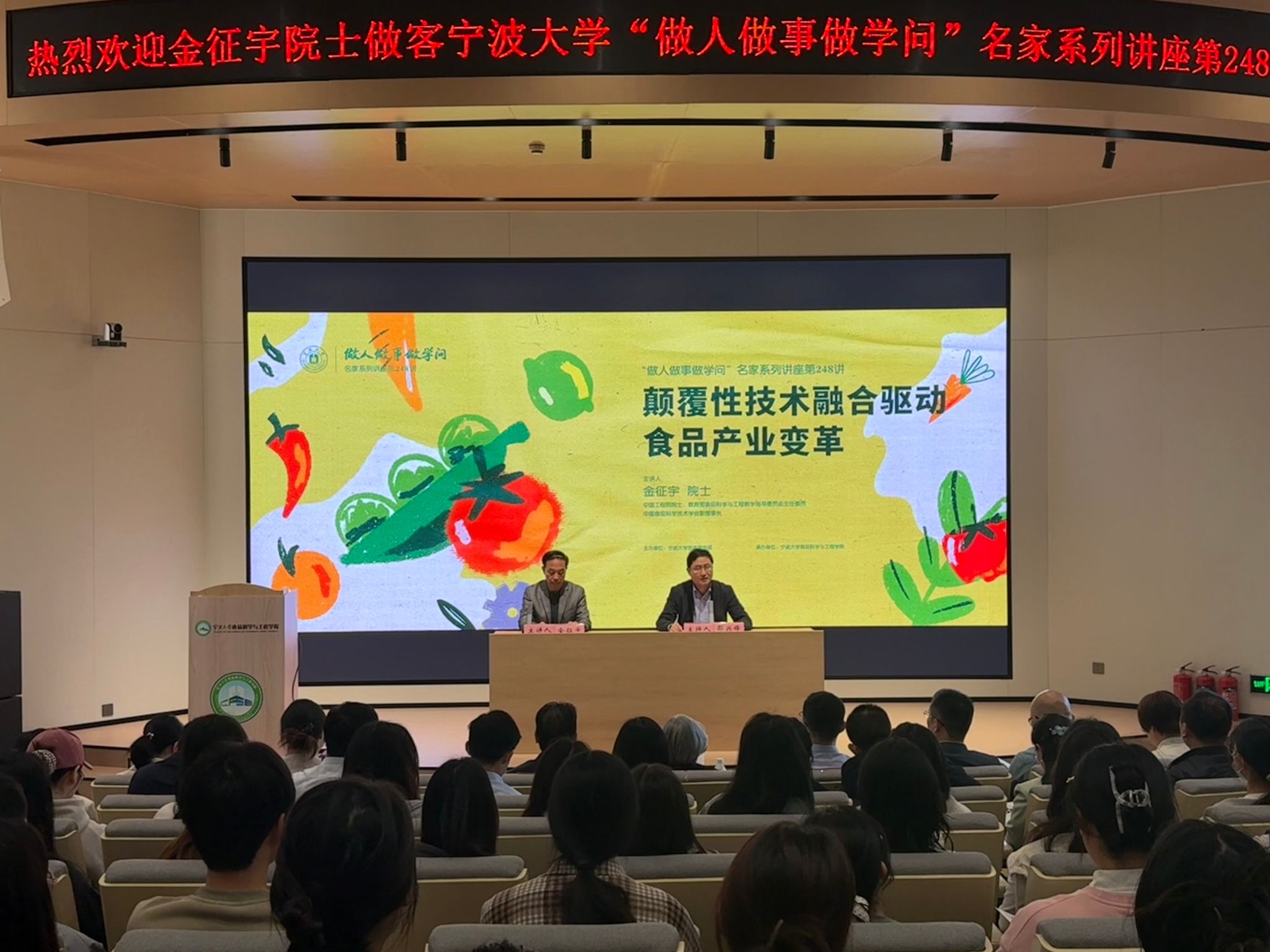 的建设发展给予充分肯定。他表示,尽管学院成立时间不长,却已在学科专业建设、人才培养和科研创新等方面成果斐然。师生们展现出的拼搏奋进精神尤为可贵,这种昂扬向上的劲头,正是推动学院不断向前的强劲动力。金征宇院士满怀期待地鼓励师生,继续保持这份热情,在食品科学领域深耕细作,书写更多精彩篇章,为祖国培育更多高素质专业人才。