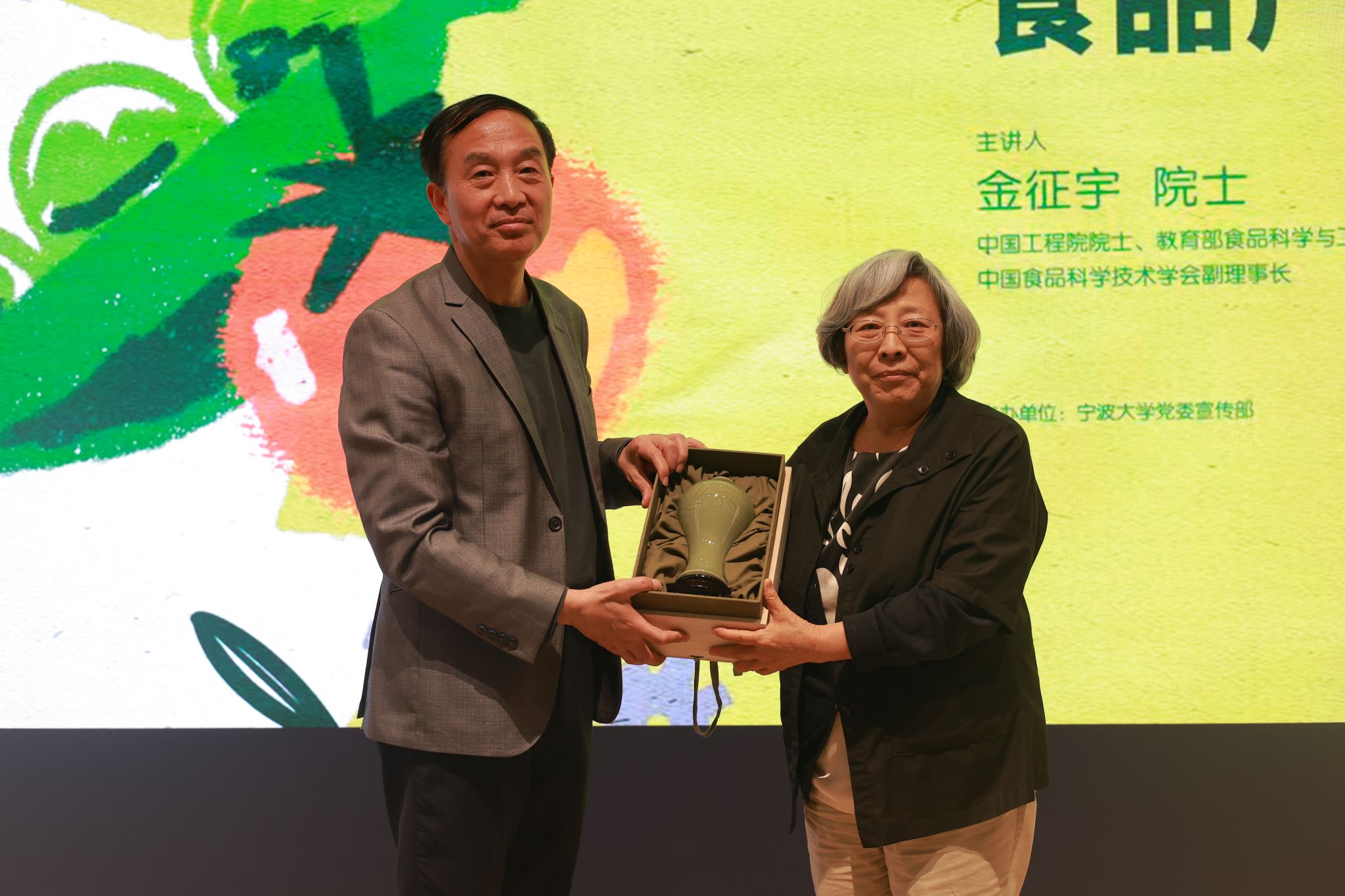 讲座尾声,赵玉芬院士代表学校向金征宇院士赠送“古越青瓷”纪念品。这承载着浙东文化底蕴的礼物,不仅象征着此次学术交流历经淬炼的厚重价值,更寓意着金院士带来的启迪如青瓷般温润绵长,值得师生们永远珍藏,也为此次意义非凡的学术交流活动画上圆满句号。