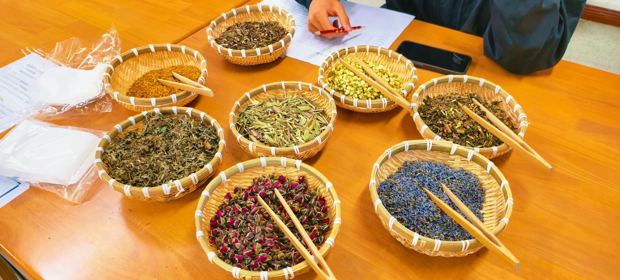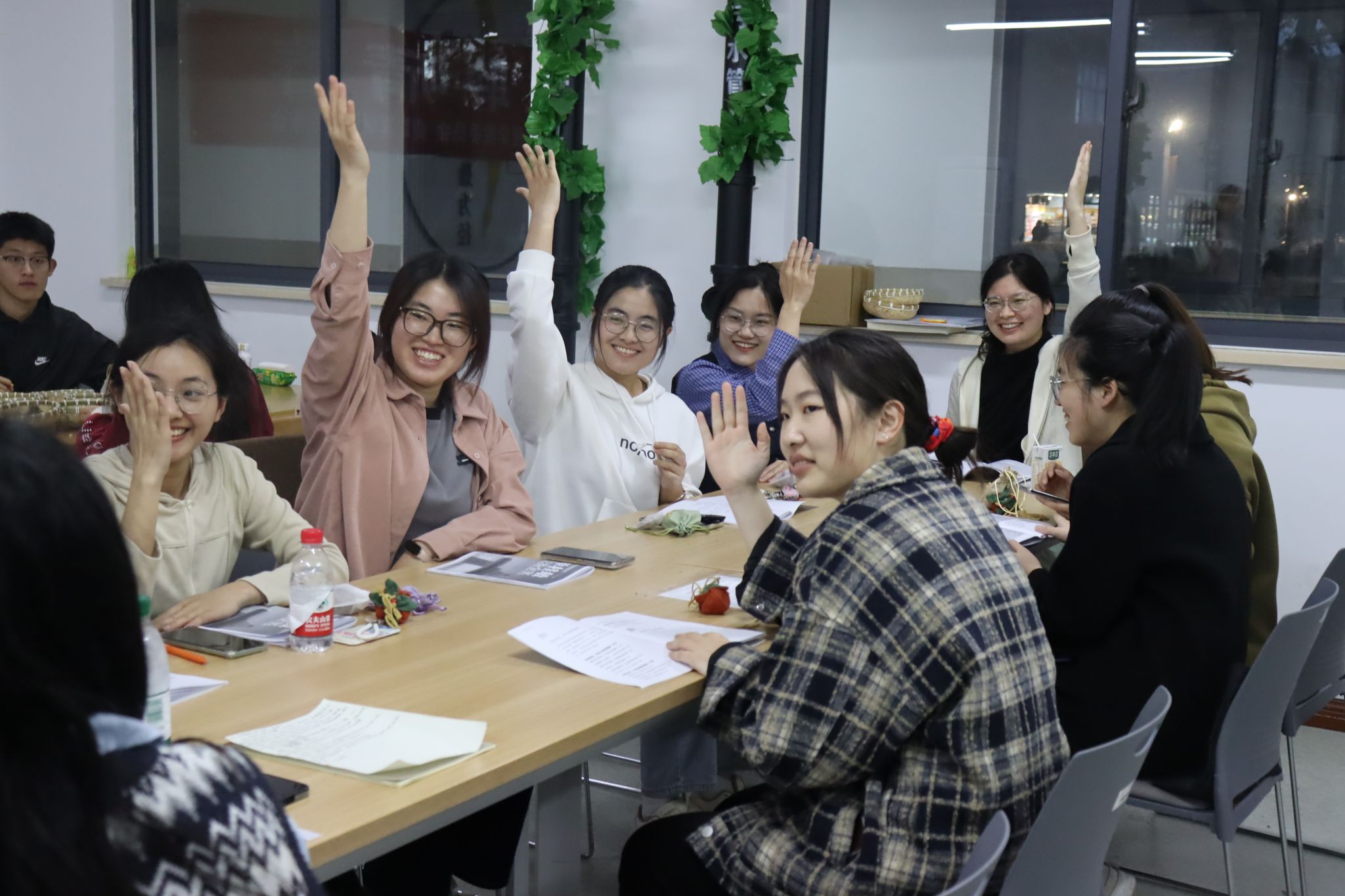 4月26日晚的活动现场依旧热闹非凡,韩枚伶同学结合自身经验,分享阅读心得,揭开艾灸这一传统中医疗法的神秘面纱。她的生动讲述让大家意识到艾灸与日常生活紧密相连,可缓解疲劳、预防疾病等。为将书中养生智慧真正融入生活实际,活动中还设置了趣味DIY环节。同学们运用书中养生原理,挑选养生药材和干花材料,精心制作独具特色的养生茶包和香囊,感受中华传统文化与现代科技的融合之美。