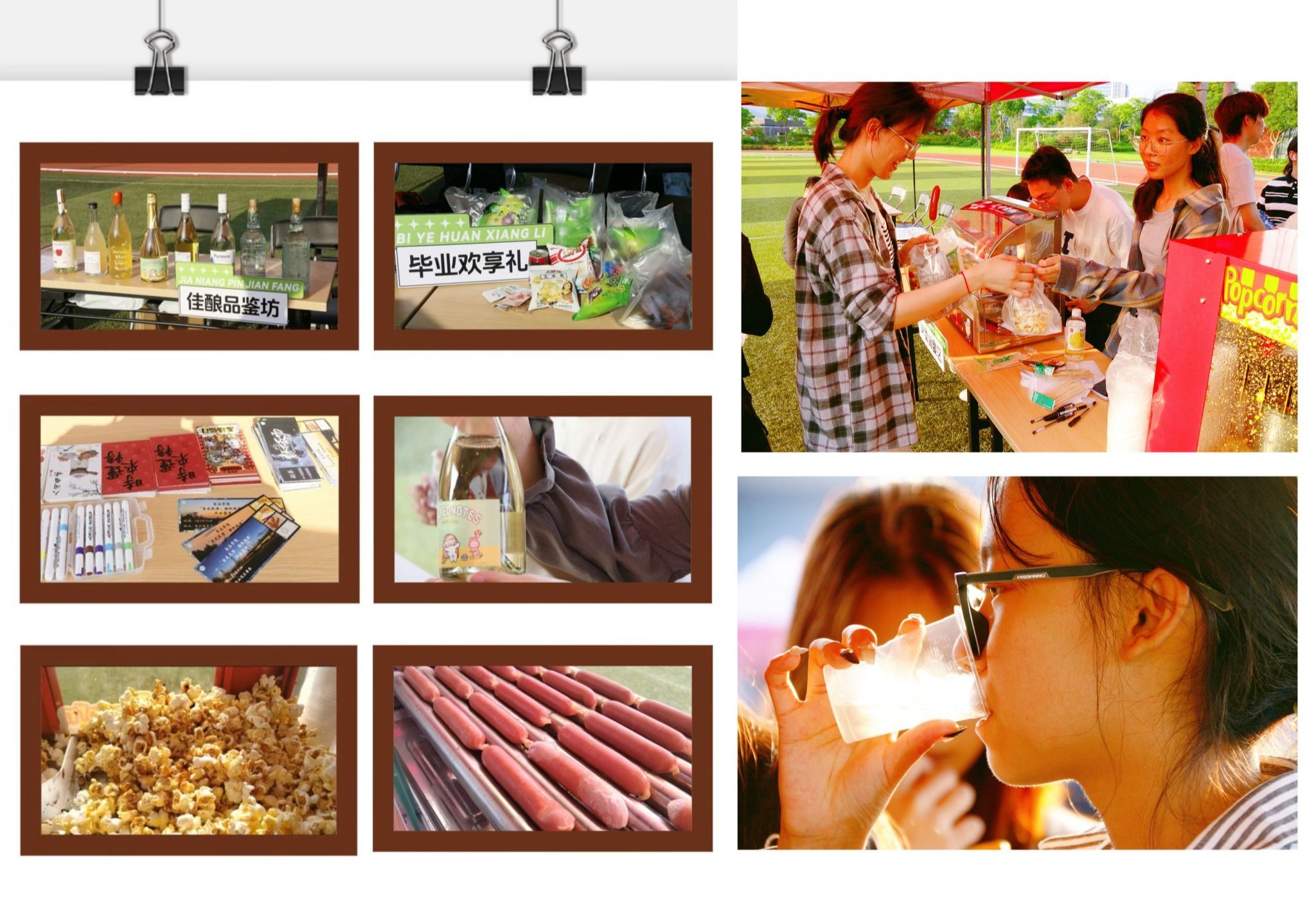 活动现场,多个特色区域亮点纷呈。在佳酿品鉴坊,精心酿制的蓝莓酒、青梅酒等特色果酒吸引众人驻足。晶莹的酒液不仅展现了食品专业的实践成果,更通过“佳酿共品鉴”环节,让毕业生在品味中重温专业学习的点滴。未来寄语站设置的“食光照相馆”备受青睐,500余张印有宁大四季风景的定制明信片供不应求,毕业生们纷纷写下对母校的眷恋与对未来的期许,通过留言板“寄”往天南海北,并在镜头下定格他们青春最灿烂的笑容。