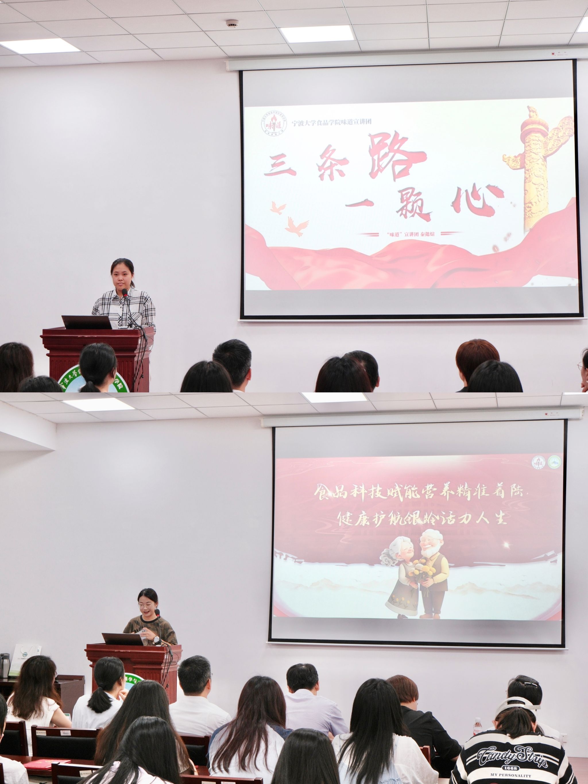 “味道” 宣讲团是在学院党委的统筹领导下,充分依托食品科学与工程学科专业优势精心组建的理论知识与科普传播团队。其命名寓意深远,既蕴含着 “品味真理之道” 的精神内核,又彰显了 “传播科学之味” 的实践导向。该宣讲团始终秉持 “品味真理之道,传播科学文化” 的核心理念,致力于通过多样化的形式,助力青少年学生和社会各界人士深入学习党的创新理论,系统了解食品领域的文化科普知识。首批宣讲团成员架构完备,由 29 名本硕学生组成梯队,11 名党政领导与专业教师组成导师团。