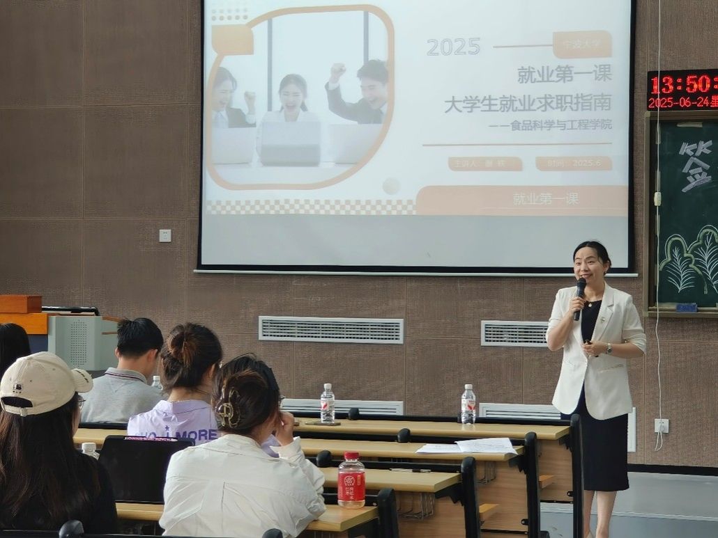 空间优聘柏职通就业服务中心主任谢轶,带来的《就业第一课 —— 大学生就业求职指南》主题指导,如同一盏明灯,照亮了同学们的求职之路。谢主任基于最新就业数据,深入剖析食品行业就业形势。她指出,功能性食品研发、跨境电商等新兴领域正蓬勃发展,成为行业新的增长点,市场对既懂专业知识又具备创新思维、跨领域能力的复合型人才求贤若渴。她叮嘱同学们,在大学时光里,既要深耕专业技能,积累丰富实践经验,也要时刻关注行业动态,让自己的职业竞争力与行业发展同频共振。