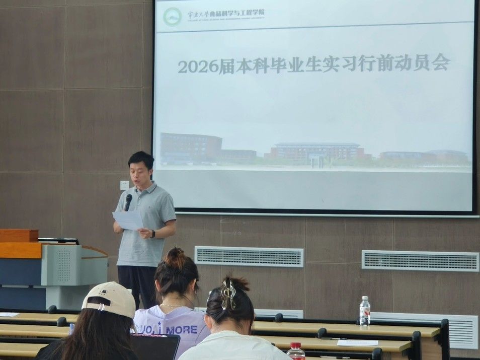 2026 届本科毕业生生产实习行前动员会于国际楼 3 楼阶梯教室圆满召开。此次会议由学院党委副书记张维主持,旨在为即将踏上实习征程的学子明晰方向、筑牢安全意识,助力其在实践中成长。