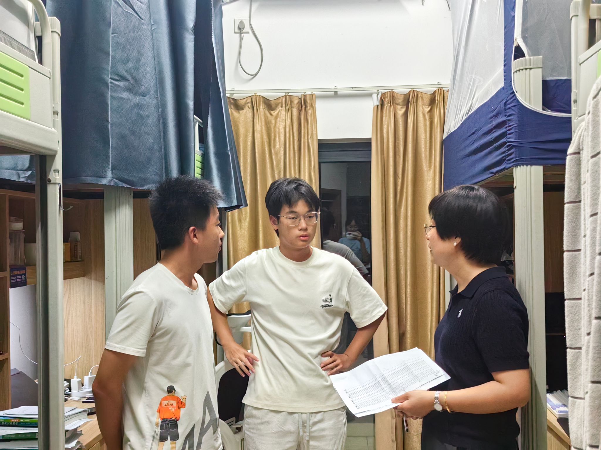 9月29日晚间,张维副书记带领学生团队深入全体2025级学生寝室,开展检查走访,重点排查寝室内部可能存在的安全隐患,包括违规电器使用、消防安全通道畅通等情况,确保学生居住环境安全。