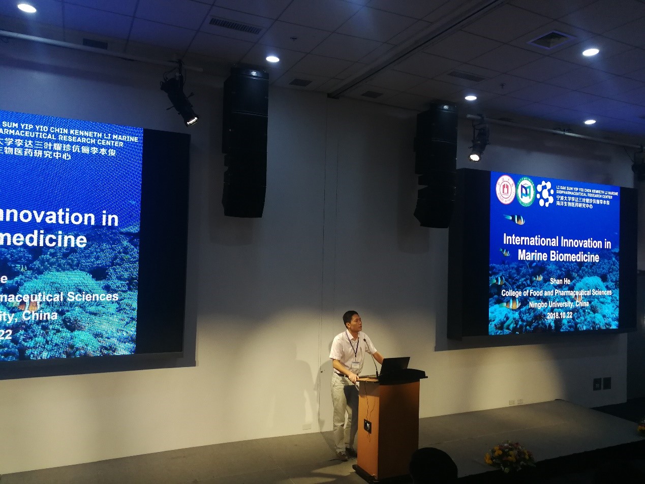 食品与药学学院教师斯拉瓦·爱泼斯坦、何山、C. Benjamin Naman (Ben)、张为艳受邀参会,其中何山和Ben受邀作了大会报告(Plenary Speaker)。何山的报告《International Innovation in Marine Biomedicine》介绍了黑料