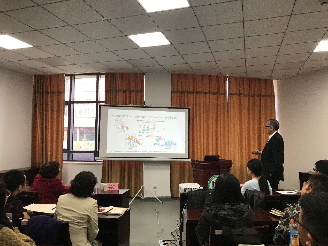 Charles McKenna教授目前担任南加州大学新药发现中心(USC Center for Drug Discovery)主任,已发表论文/获批专利超过250篇(项)。McKenna教授的研究兴趣是药物化学和化学生物学,致力于靶向二磷酸盐类药物及显像剂、新型癌症疗法、高效口服抗病毒、抗真菌类药物的设计与研究。Charles McKenna教授从历史上经典的药物发现,如盘尼西林,抗艾滋病药物AZT讲起,探讨了癌症的特征、普通人患癌几率以及当前新药研发的困境与挑战(如药物研发的倒摩尔定律(Eroom’s Law),并以自己实验室的几项研究成果为例,讲述了新技术的突破以及多个机构的有效合作对药物研发的重大影响,比如计算机辅助药物设计,高通量筛选,大学、研究所、公司以及资本的通力合作。学术报告期间,学院师生与McKenna教授基于学术报告的内容和药物研发的困惑进行了热烈的交流。