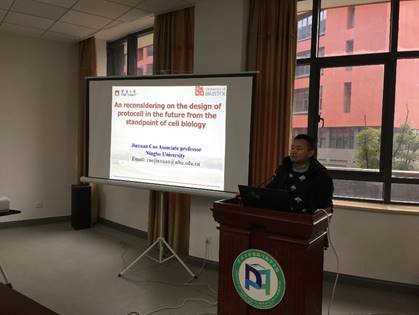 2018年12月25日,食品与药学学院青年教师学术沙龙在梅山校区竺银康楼开讲了。第一讲,由刚从英国布里斯托大学访学归来的曹锦轩副教授主讲,题目为“An reconsidering on the design of protocell in the future from the standpoint of cell biology”。他从食品跨界接触化学领域研究protocell,分享访学收获;又从化学回归食品、药学研究,探讨二者结合的交叉点和创新点。最后,曹老师还就基金申请、青年科研人员发展等与青年教师探讨。本期第一讲由学院院长助理邵兴锋教授主持。