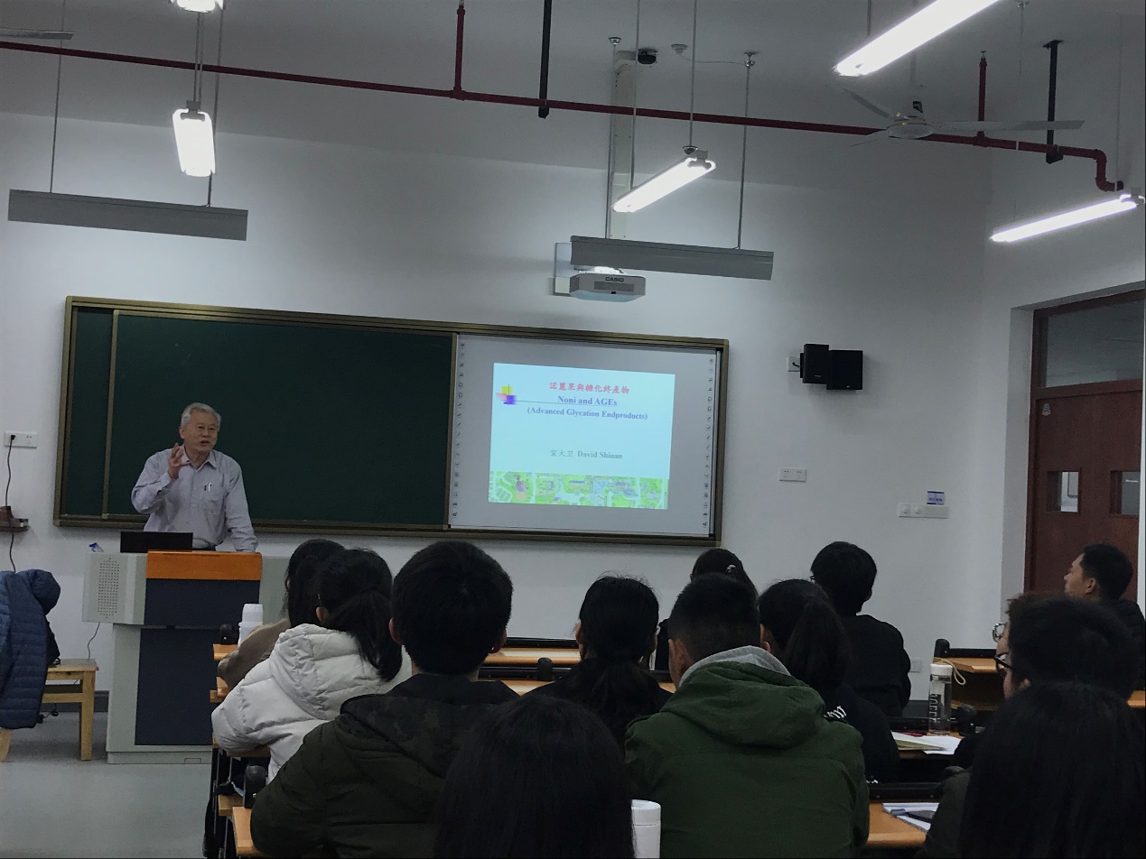 梅山校区, 做了题为“诺丽果与糖化终产物Noni and AGEs (Advanced Glycation End products)”的学术报告。此次学术报告,由食品与药学学院副院长 何山教授主持。