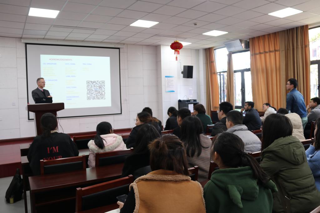 梅山校区,做了题为“Development of novel therapeutics in oncology”的学术报告。参加此次学术报告的有海洋药学和食品工程专业的本科生、研究生以及多位教师。此次学术报告由食品与药学学院副院长何山教授主持。