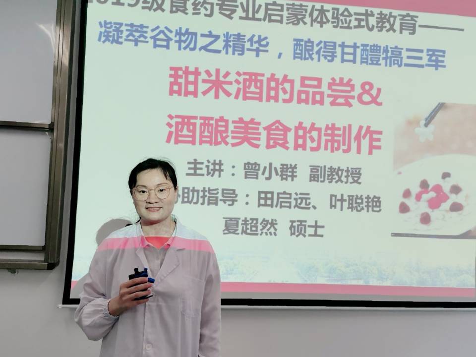 专业体验,经验分享,拓国际视野。专业学习是大学生活的核心内容。为了帮助同学们尽快了解自己所学专业,食药学院邀请曾小群副教授给食品专业的同学们带来一场“甜米酒的制作”专业启蒙体验式教育。曾老师结合课件和实验操作手把手教同学们如何掌握传统发酵技术。经过三天的酝酿,同学们在军训闭训式当天品尝到了亲手制作的酒酿。古有越往勾践有酒投江,今有宁大新生酒酿犒三军。通过一次饱含专业性和趣味性的实验,同学们体验到实践科学的魅力,加强对专业的认知。此外,为了帮助同学们尽快适应大学学习节奏,学院邀请了梅山校区图书馆但旺老师带来入馆教育,介绍图书馆丰富的馆藏书册和电子资源,鼓励同学们大学期间成为图书馆的常客。同时,学院还邀请在学业和科研等方面表现突出的学长学姐为同学们分享经验,传经送宝。最后,结合食药学院国际化师范学院的建设目标,学院教学副院长何山教授为大家带来一场以“国际化卓越人才培养”为主题的讲座。何老师从“什么是国际化?”、“为什么要国际化?”、“如何实现国际化”以及“新时代背景下国际化的重要性”四个方面引导同学们学好英语,拓展国际化视野。随后,学工办主任吴琳华老师向新生们讲解了校院两级在国际化人才培养方面的诸多资助政策和交换生项目,鼓励同学们提早规划,勇于拓新。