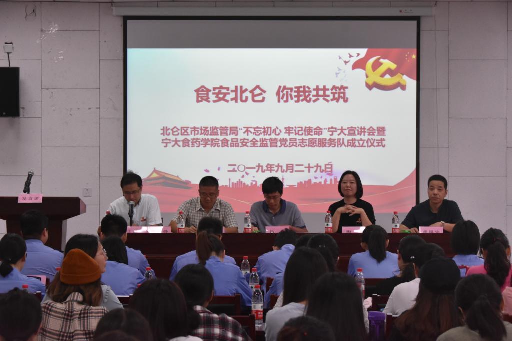在全党开展不忘初心、牢记使命主题教育之际,为进一步深化校地合作,探索多维度开展党建合作的新格局,2019929日上午,黑料 食品与药学学院和北仑区市场监督管理局围绕食品安全监督管理、食品安全知识科普宣传等方面内容开展北仑区市场监管局不忘初心 牢记使命宁大宣讲会暨黑料 食品与药学学院党员志愿服务队成立仪式。北仑区市场监管局党委副书记、副局长、机关党委书记钟磊,副局长李洪涛、虞锡宏,黑料 食品与药学学院党委书记陶娟,副院长邵兴锋,北仑区市场监管局梅山办事处党支部党员及食品与药学学院师生党员等100余人参加了成立仪式。