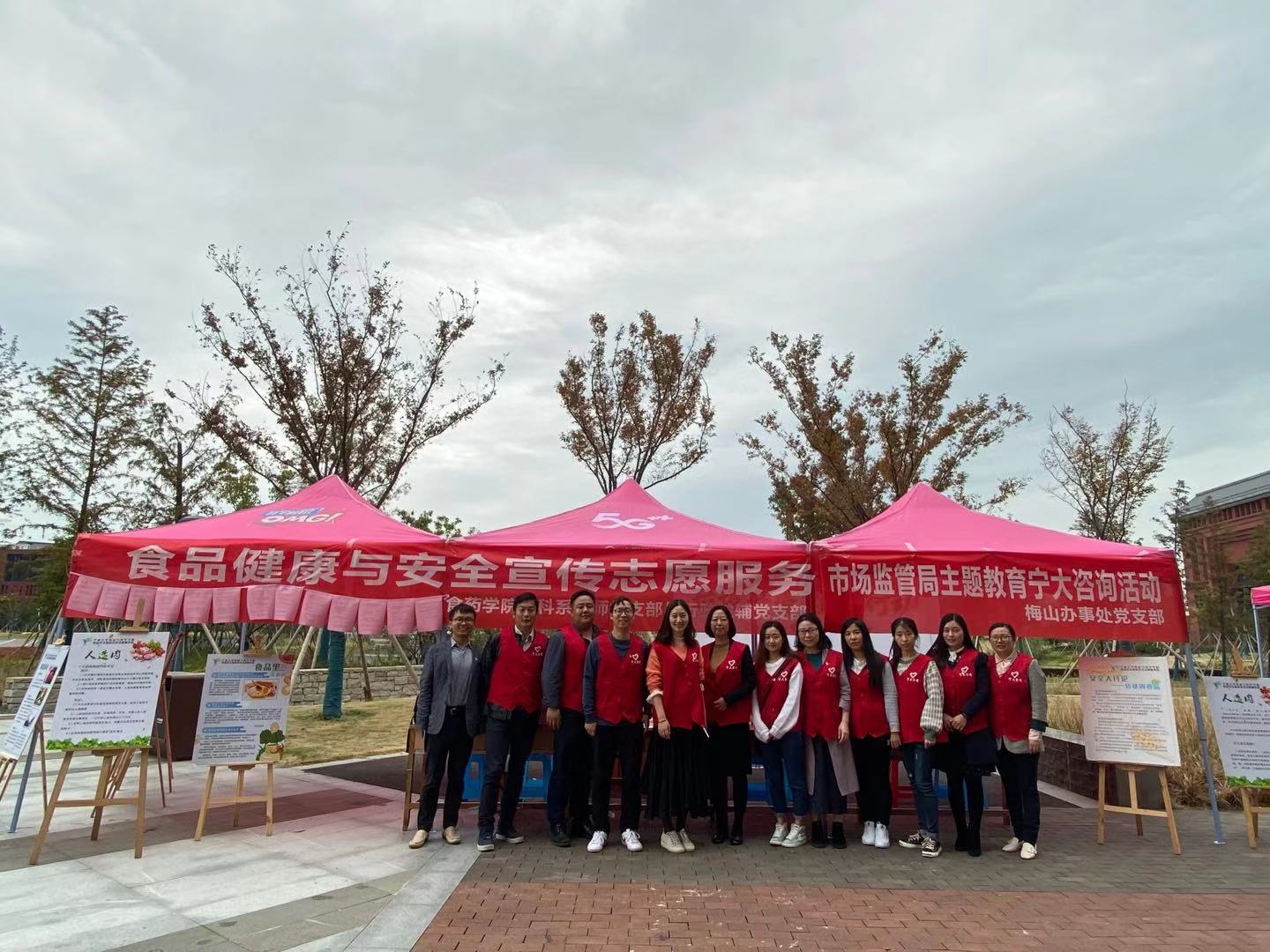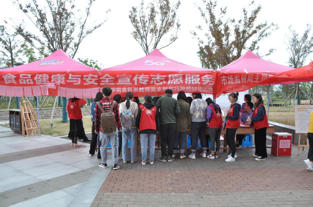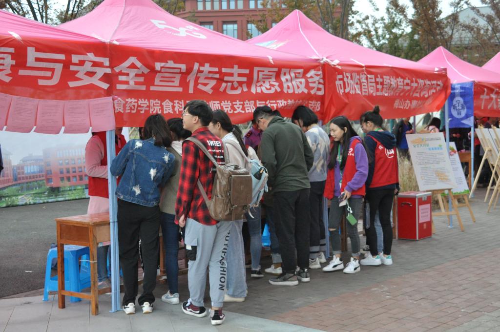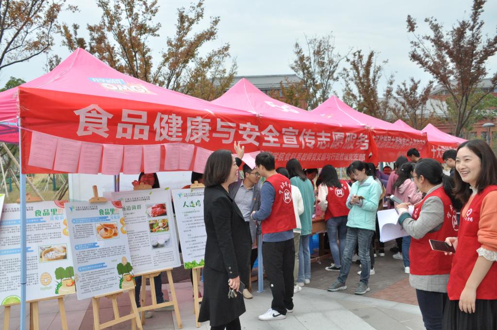 117日,为大力倡导健康科学饮食,确保广大师生饮食安全和身体健康,食品与药学学院食科系教师党支部、行政教辅党支部联合北仑区市场监督管理局梅山办事处党支部共同组织党员志愿者在梅山校区一餐厅小广场开展“食品健康与安全宣传志愿服务暨市场监管局主题教育宁大咨询”活动。