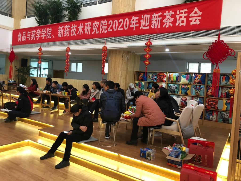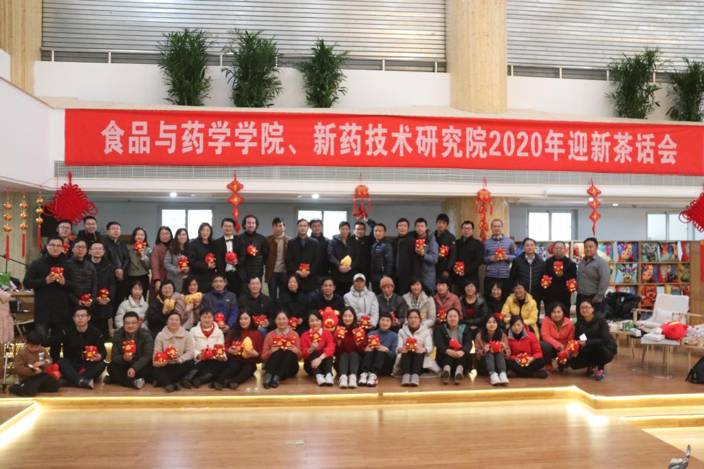 2020年1月8日下午,食品与药学学院、新药技术研究院2020年迎新茶话会在包玉书科学楼12号楼一楼大厅圆满举行。食药学院院长潘道东、党委书记陶娟、副院长邵兴锋、新药技术研究院副院长黄少华、工会主席娄永江、食药学院及新药院教职工、离退休教师欢聚一堂,共迎新年,共话未来。