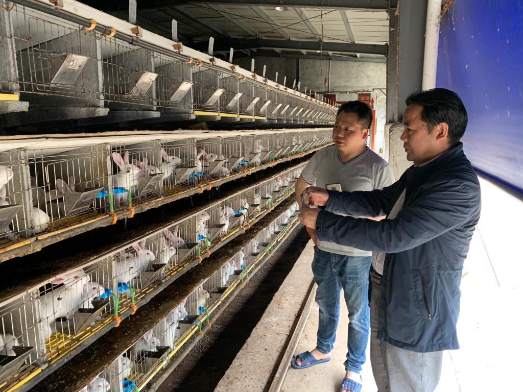 最后,潘道东一行走访了新昌县林林兔业有限公司,对企业养殖规模及加工环境进行了实地考察。同样受疫情影响,企业传统产品獭兔毛销售也受到较大影响,为了寻求突破和转型,双方就兔肉精深加工的方向进行了探讨,并取回了一些样品进行试验性加工。