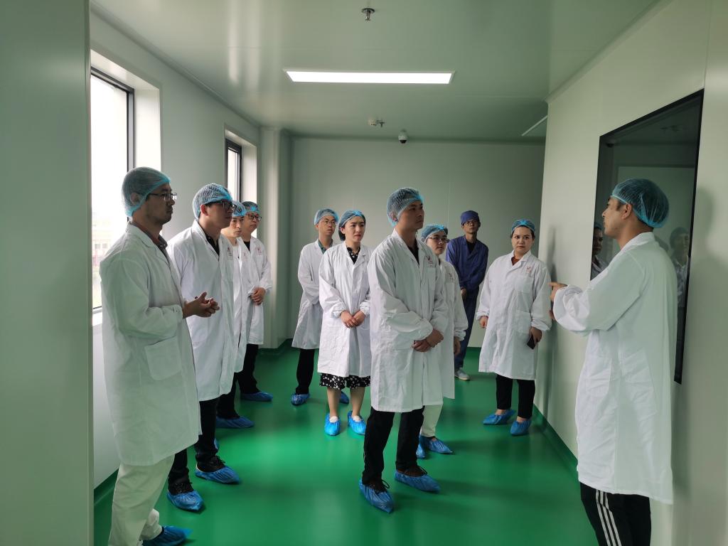 在宁波海尔施基因生物医药有限公司研发中心总监肖志勇博士以及生产部、工程设备部和车间相关负责人的陪同下,党员们先后实地查看了宁波海尔施基因生物医药有限公司的研发中心,各种剂型生产的现代化生产线,以及中控室。