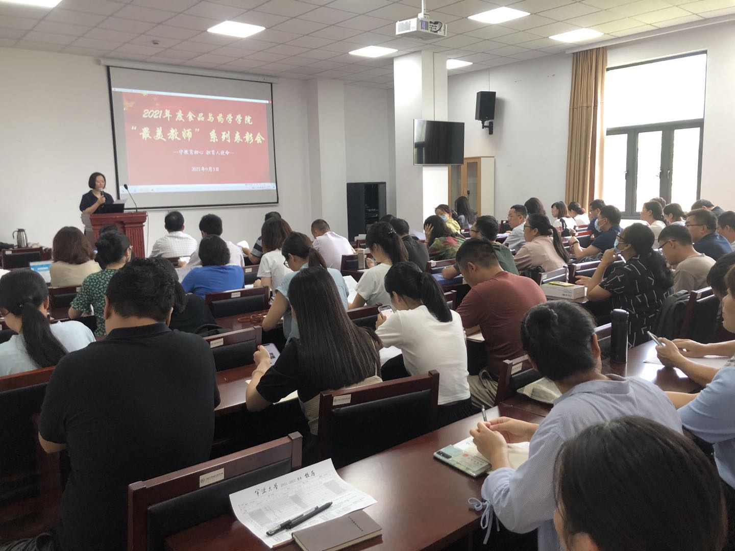 9月3日下午,食品与药学学院在梅山校区竺银康楼122会议室举办了“最美教师”系列表彰会,对获评2021年“最美食药人”的10位优秀教师及在教学、科研、思政、党建方面取得优异成绩的教师进行了表彰。会议由院党委书记陶娟主持,学院全体领导班子及全体教职工参加了会议。