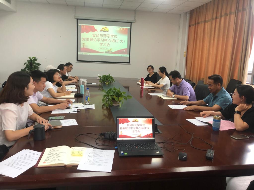 9月15日下午,食品与药学学院党委在梅山校区竺银康楼202会议室召开了理论中心组学习扩大会,理论中心组全体成员、系主任、系副主任及教工党支部书记参加了会议。会议由党委副书记谢果凰主持。