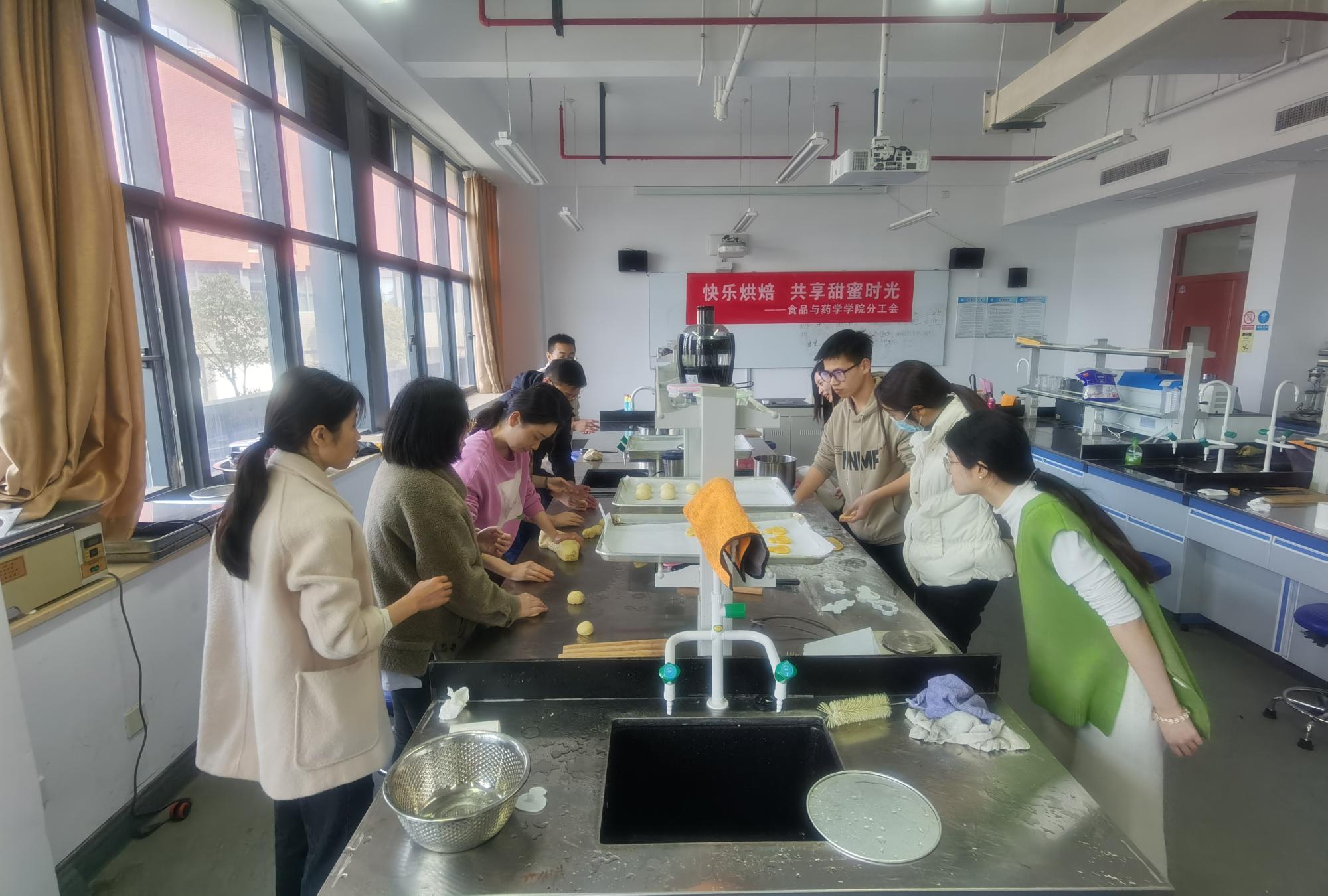 人间最美三月天,春华烂漫展新颜。3月8日下午,食品与药学学院开展“快乐烘焙、共享甜蜜时光”女教工活动。“烘”享生活,“焙”感幸福,烘焙老师现场示范,讲解饼干和面包的制作过程。女教师们纷纷化身为心灵手巧的“烘焙女神”,现场弥漫着浓郁的奶油香味,洋溢着阵阵欢声笑语。学院执行院长邵兴锋、党委书记龚文杰、工会席娄永江亲临现场参加活动。