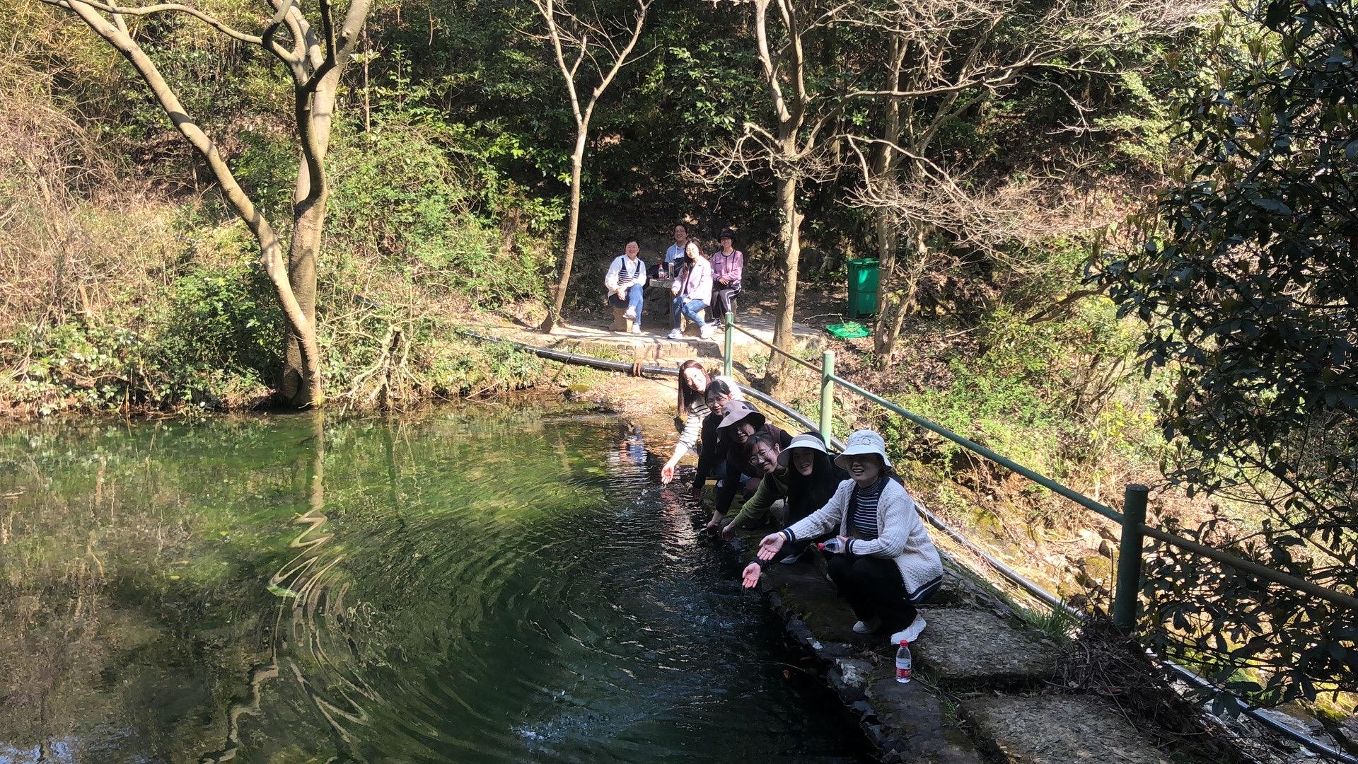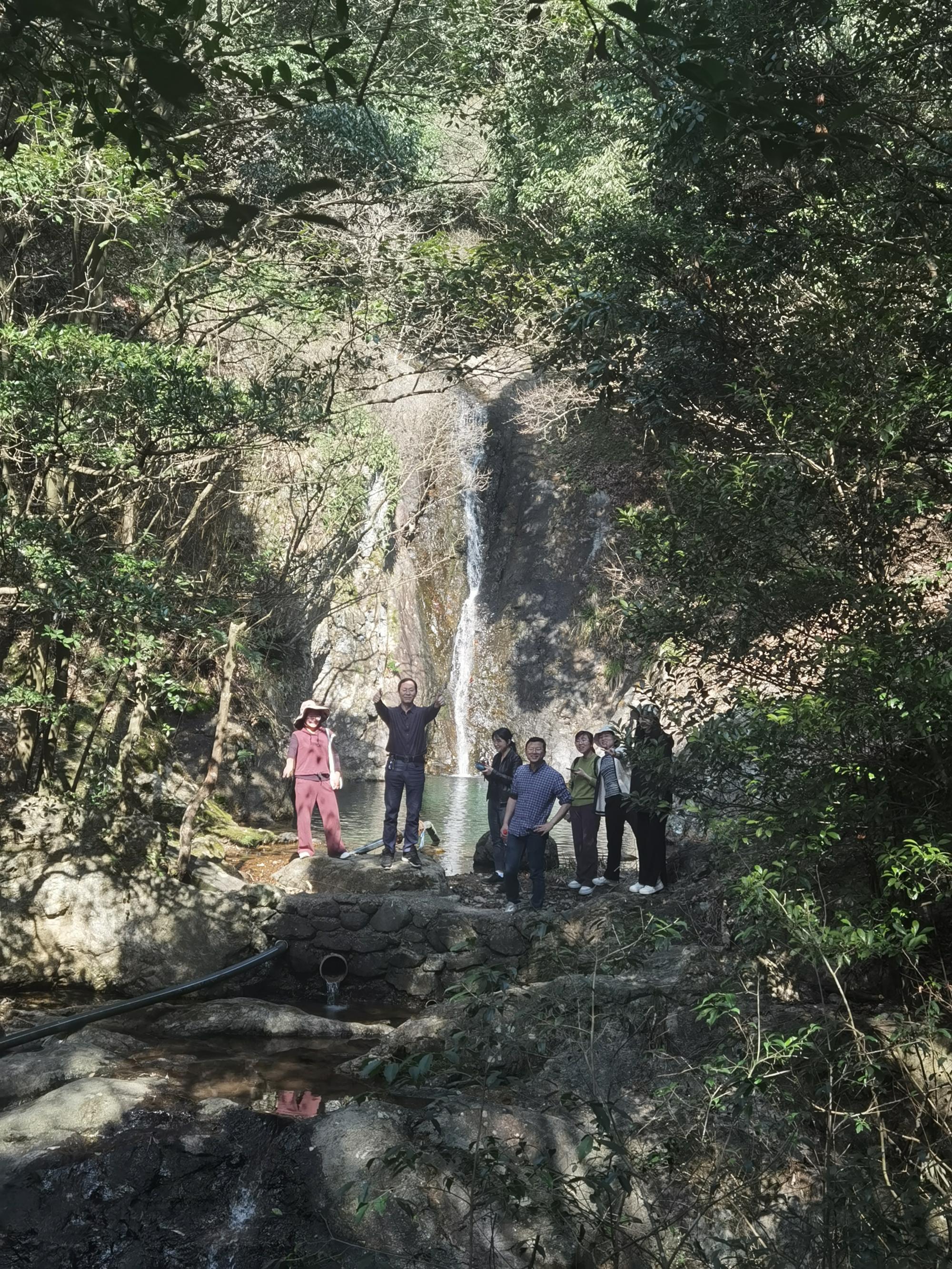 我们的第一站是北仑白峰虾腊,虾腊是个背山面海、风景秀丽的小村庄,这里既有清山的秀美,也有大海的壮阔。一条溪坑把虾腊村分为东西两部分,沿着溪流上溯源头,便可见两座水库建于大山环绕之中,山的倒影将水染得碧绿。沿着水库边缘的小路上山,就直达久负盛名的“龙头”,在这里,还能看到有宁波“小九寨”之称的龙潭。一路上老师们说说笑笑,很是惬意,被优美僻静的风景所吸引。下山后,来到心仪民宿,采茶喝茶、制作手工青团、凉亭畅聊,老师们对丰富多彩的活动赞不绝口,希望能够多组织类似的活动,增强教职工的凝聚力,丰富业余生活,提高幸福指数。