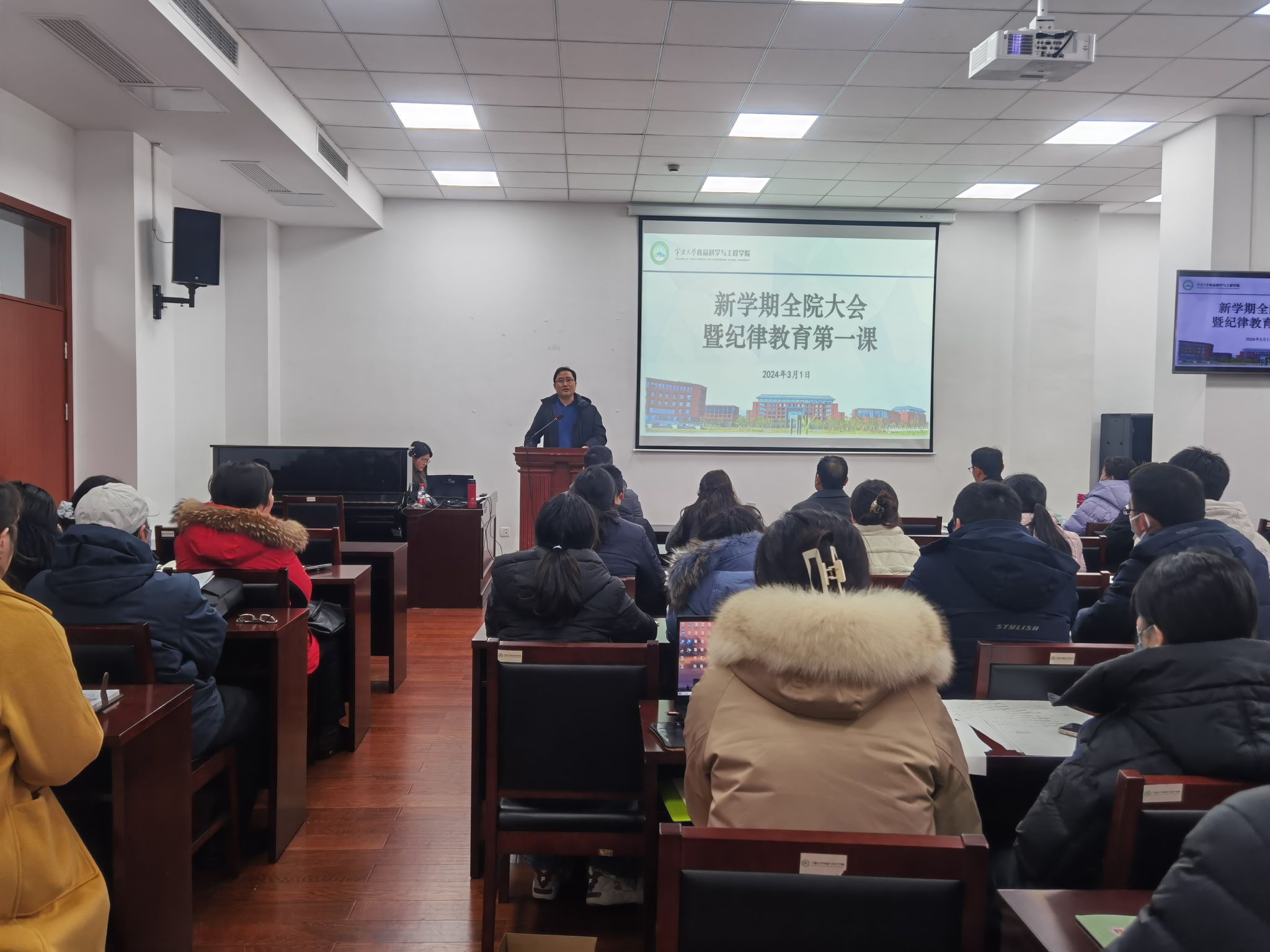 召开新学期全院大会暨纪律教育第一课,学习传达了学校中层领导干部学习扩大会、学科建设工作会议精神,突出强调了学校9项年度主要工作,布置了学院17项年度主要任务,围绕党风廉政、师德师风、安全稳定等开展了纪律教育。