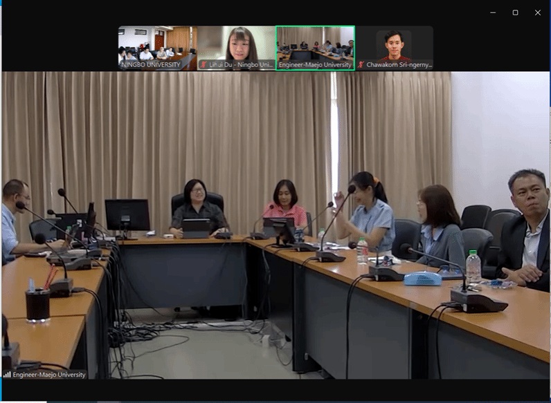的基本情况。泰国梅州大学工程与农业工业学院播放了学院短片,院长Dr. Kanjana Narkprasom等人进一步详细介绍了食品系及相关研究团队情况。学院年轻教师姜舒、杜丽慧、贾茹、陈康等详细介绍了黑料