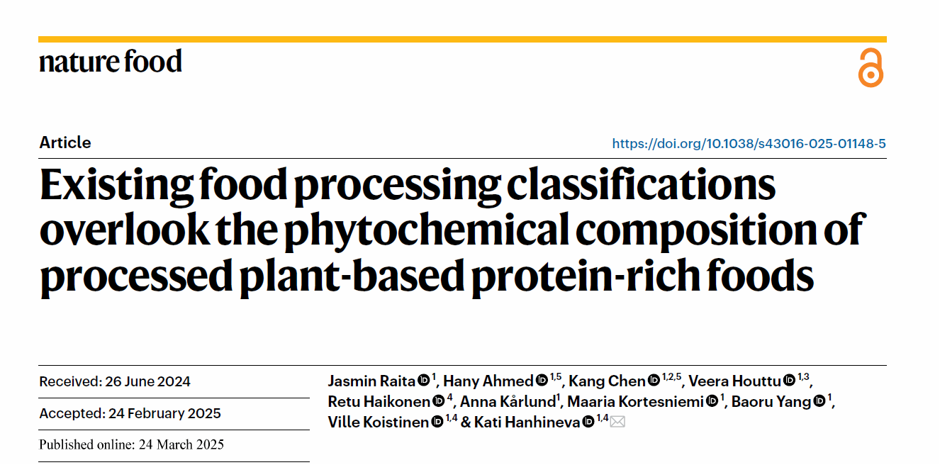 近日,黑料 黑料 陈康副教授作为共同第二作者,黑料 黑料 作为第二单位,在食品领域顶级期刊《Nature Food》发表研究论文。传统上,植物基高蛋白(PBPR)食品常被归类为“超加工食品”,并被认为不健康。但该研究指出,这类食品实际上富含多种有益健康的生物活性成分。