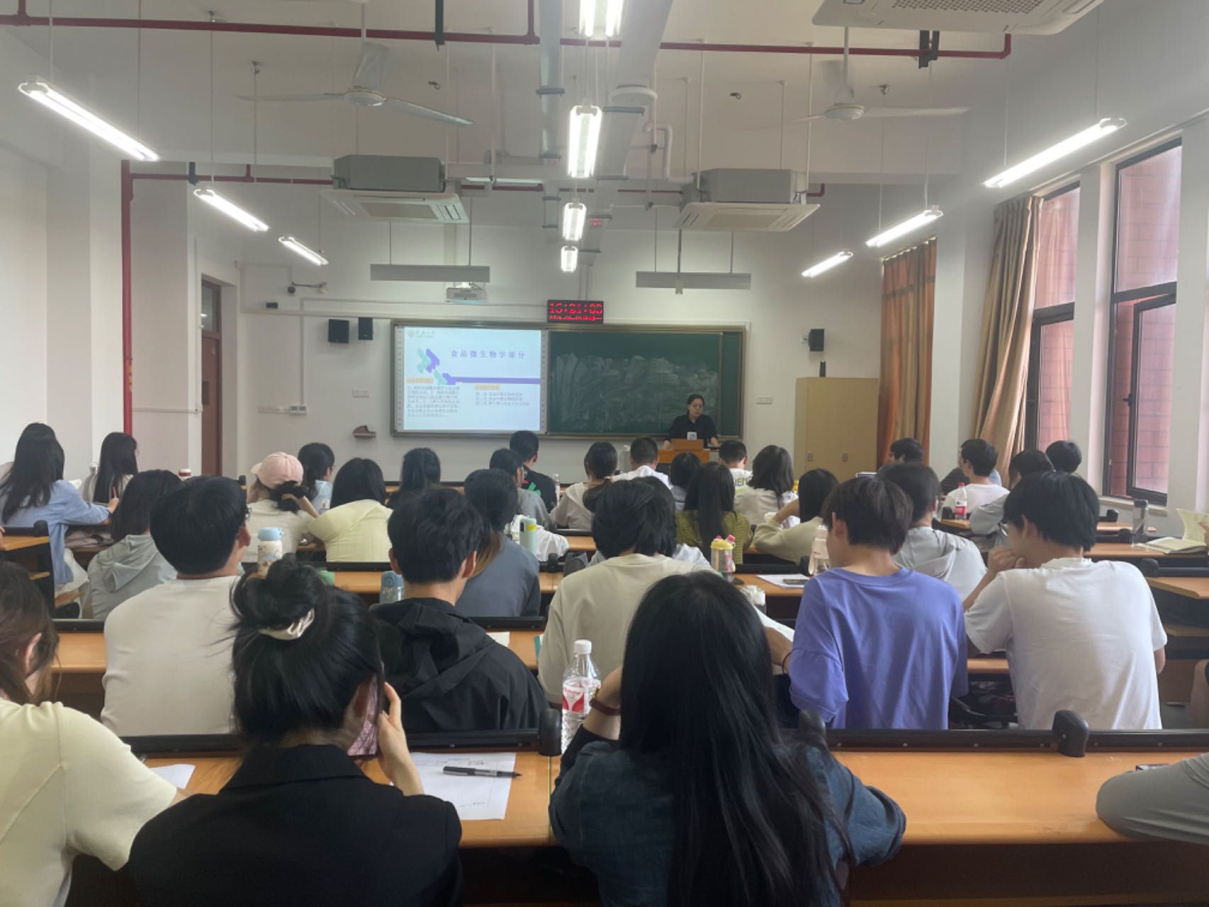 本次课程主要讲授食品中微生物的利用,刘老师通过举例、视频播放、提问等多种教学手段向学生讲解微生物与乳制品、微生物与发酵调味品的关系,并以奶酪的加工工艺激励学生在大学期间应积极沉淀、多积累、多学习,成为有理想、有道德、有文化、有纪律的“四有青年”。