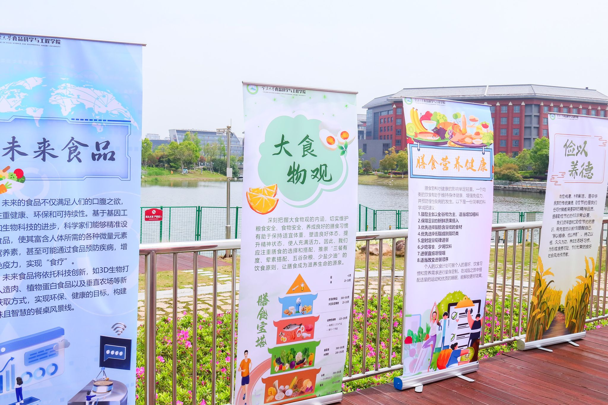 学院师生各展技艺,为大家呈现了一场风味美食的饕餮盛宴风味猪肉干、桃疏果多糖饼干、“梅式”樱花老酸奶、植物基复合发酵酸奶、烤马面鱼片、叶酸强化型乳酸菌剂、甬城“益香”糟鸡等同学们既饱口福又饱眼福。与此同时,在大食物观”、“未来食品”、“膳食营养健康等食品知识展板更有不少同学驻足打卡随处可见的俭以养德”宣传海报更是引导同学们勤俭节约健康饮食、快乐成长。