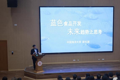 在讲座中,薛院士指出,粮食安全是“国之大者”,我们要树立大农业观、大食物观,既向陆地要食物,也向海洋要食物。浩瀚的海洋蕴藏着巨大的食物资源潜力,海洋能给人类提供的食物是陆地的1000倍,可谓是人类的“蓝色粮仓”。他强调,“蓝色食品”的开发,要致力于“生物化、高值化、品质化、方便化、个性化、智能化”的愿景。目前,他和团队正在进行“干细胞培养鱼肉”研究,通过这项极具前瞻性的探索,未来或许不再需要大体量的水域,从车间的生物反应器中就可以生产出“鱼肉”。整个讲座精彩生动、风趣幽默,让师生们听得津津有味,受益匪浅。在交流环节,师生们围绕科研探索、未来食品等话题踊跃互动,他一一回应、答疑解惑,交流现场氛围热烈而活跃。