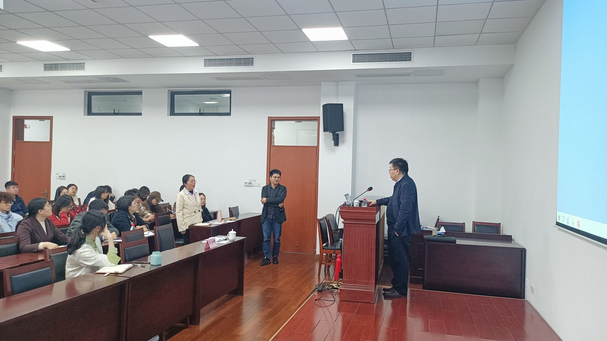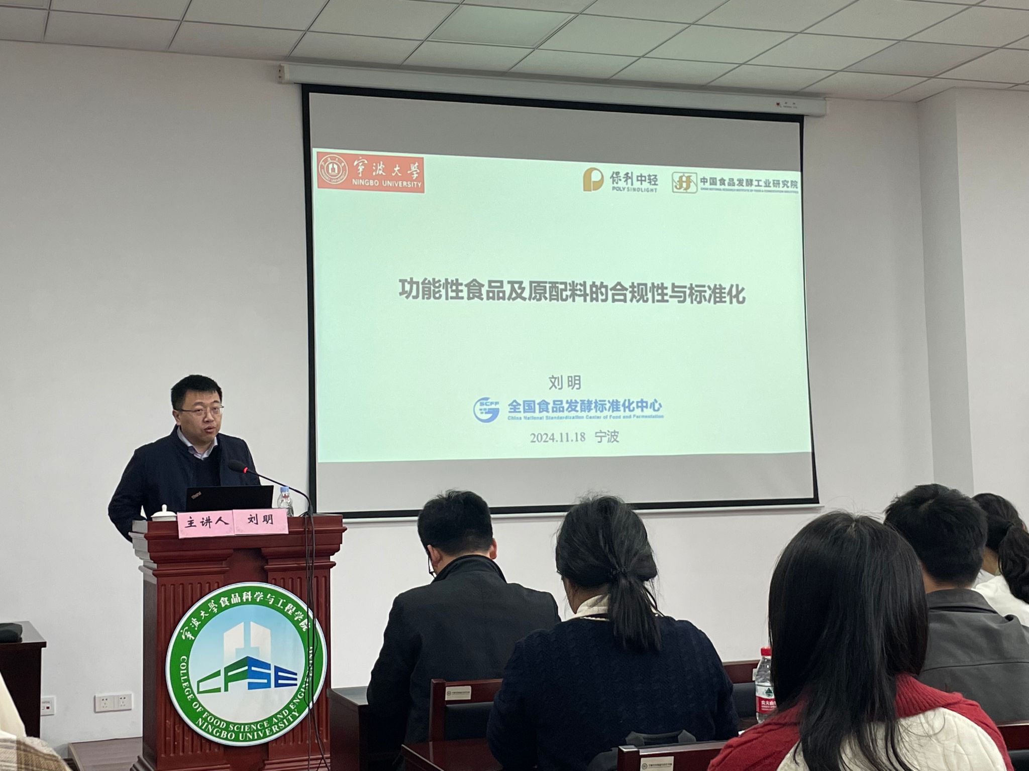 讲座中,刘明老师分别从功能性性食品的类别、合规性管理法规、特殊食品标准化、功能性原料标准四个方面出发,对功能性食品做出了全面的介绍。刘老师还举例了营养强化食品、特殊膳食用食品、保健食品的定义分类,并对食品法规、国家标准进行解读。讲座结束后,刘老师与师生们进行了交流和讨论。