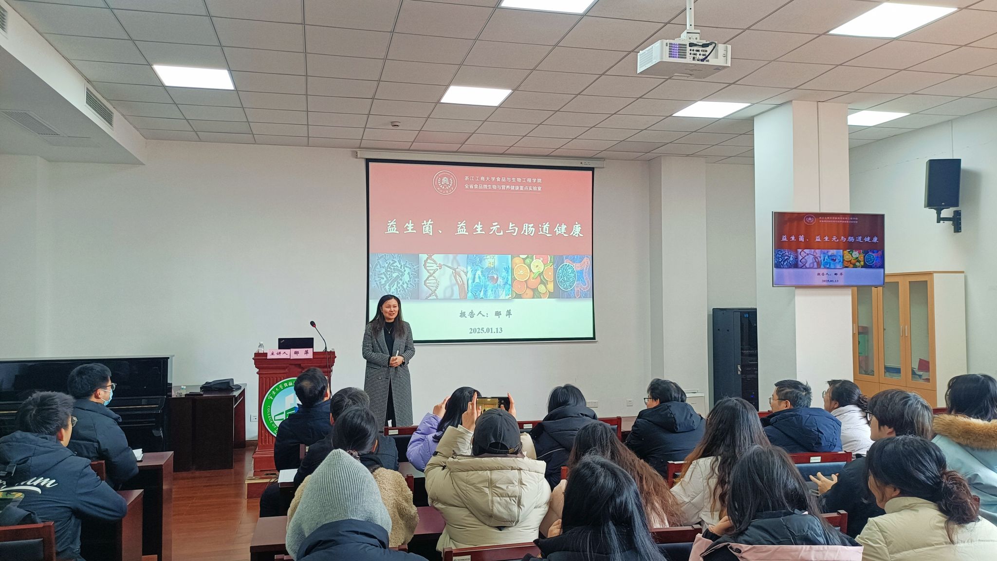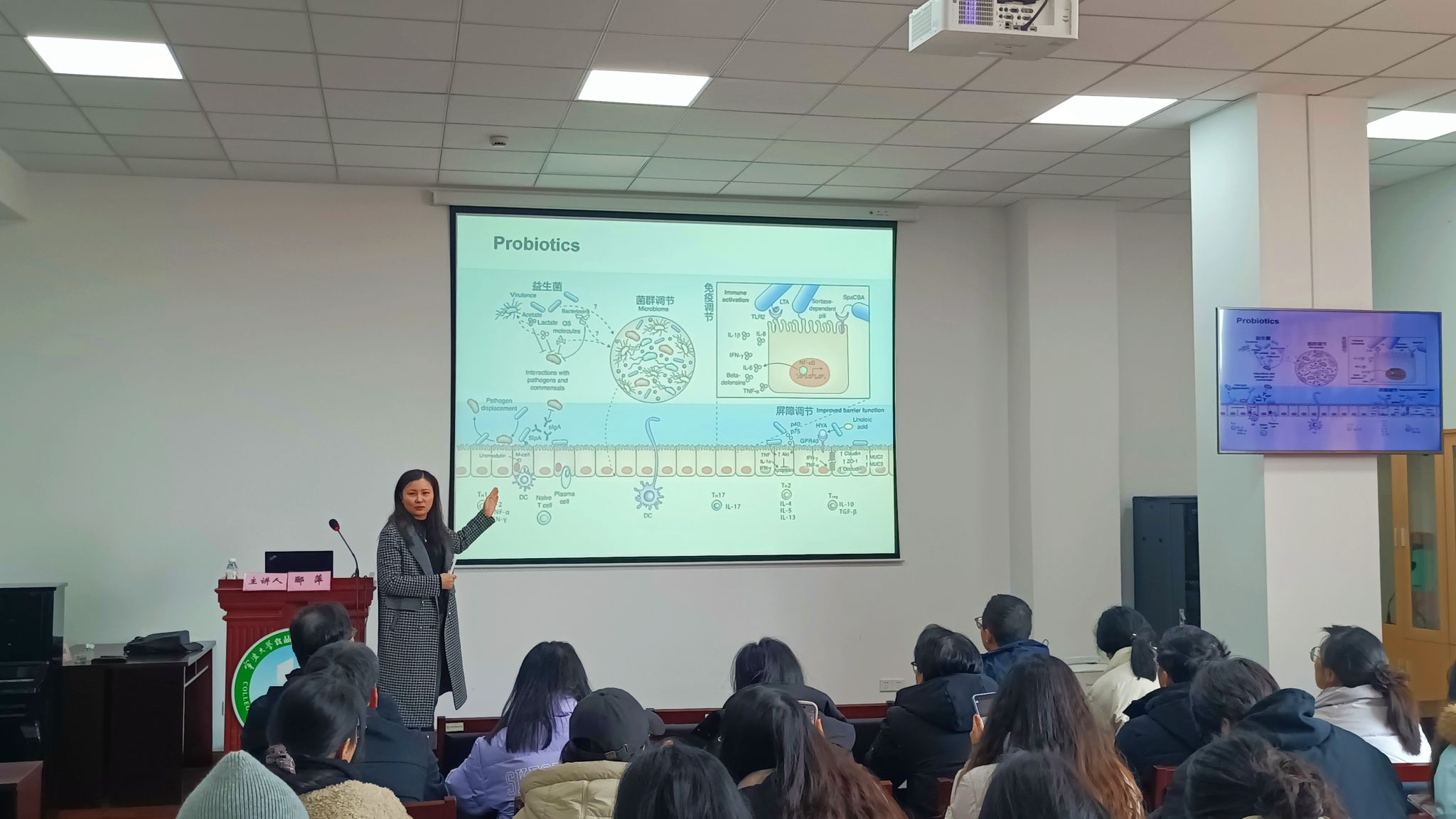 指导并作了题为《益生菌、益生元与肠道健康》的学术讲座。学院执行院长邵兴锋教授主持讲座,学院教师和研究生共80余人参加了此次讲座。