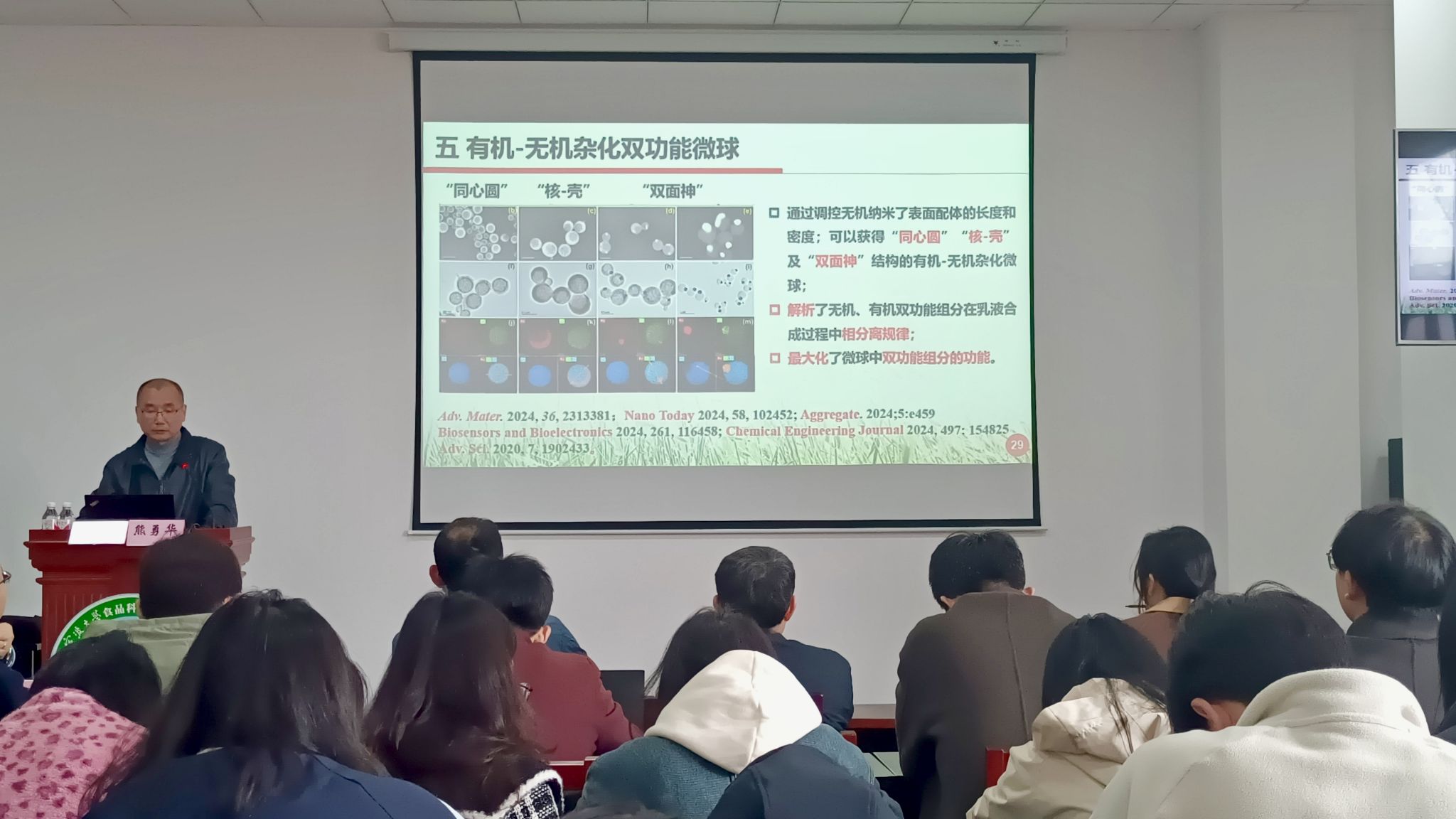 指导并作了题为《探针设计与免疫层析技术》的学术讲座。学院执行院长邵兴锋教授主持讲座,学院教师和研究生共80余人参加了此次讲座。