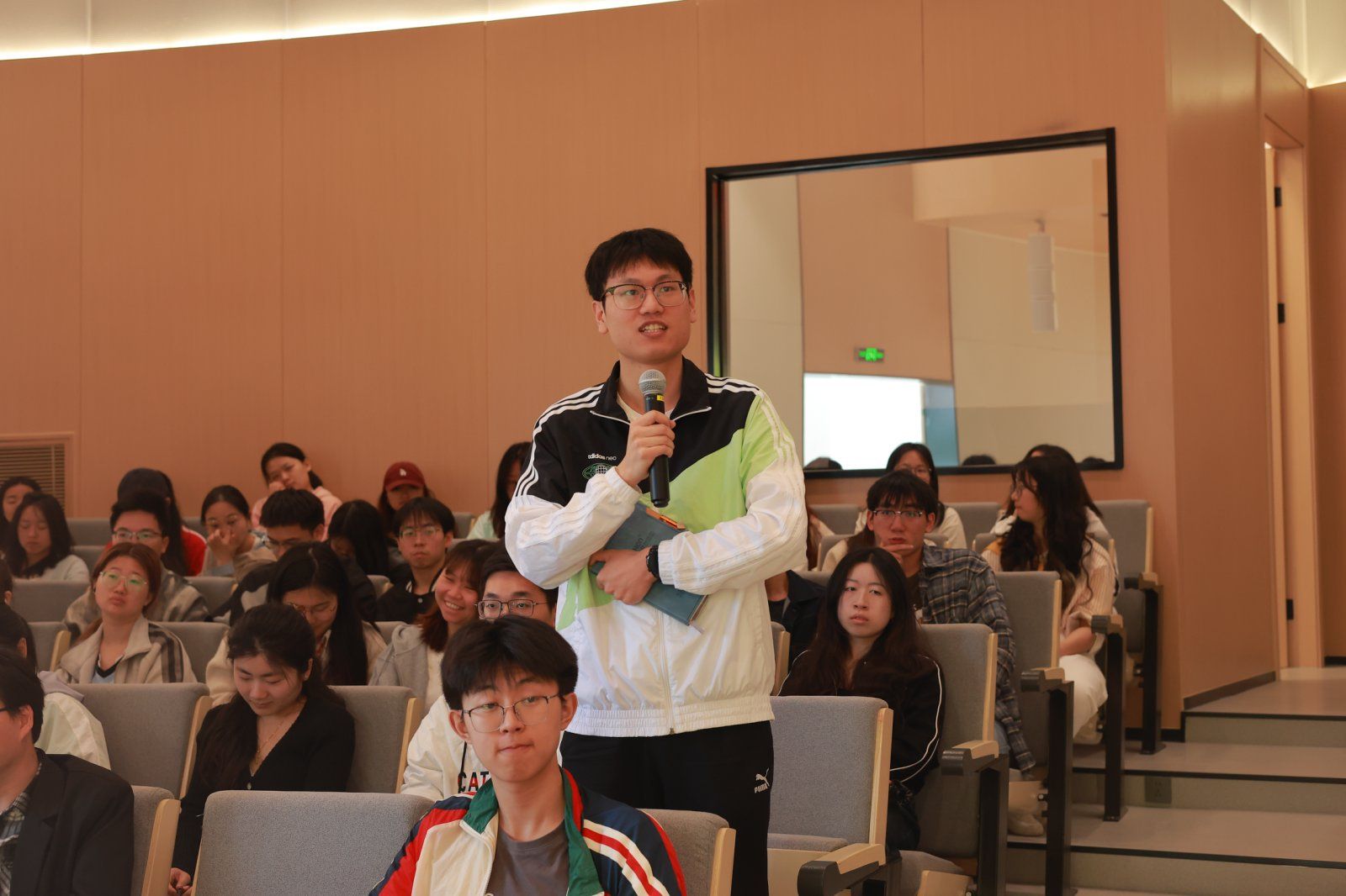 在互动交流环节,金征宇院士耐心解答同学们提出的各类问题。他语重心长地指出,我国虽已跻身科技创新大国行列,但迈向科技创新强国之路依然任重道远。他殷切寄语青年学子,要以高标准严格要求自己,勇做新质生产力发展的排头兵,为国家科技事业添砖加瓦。