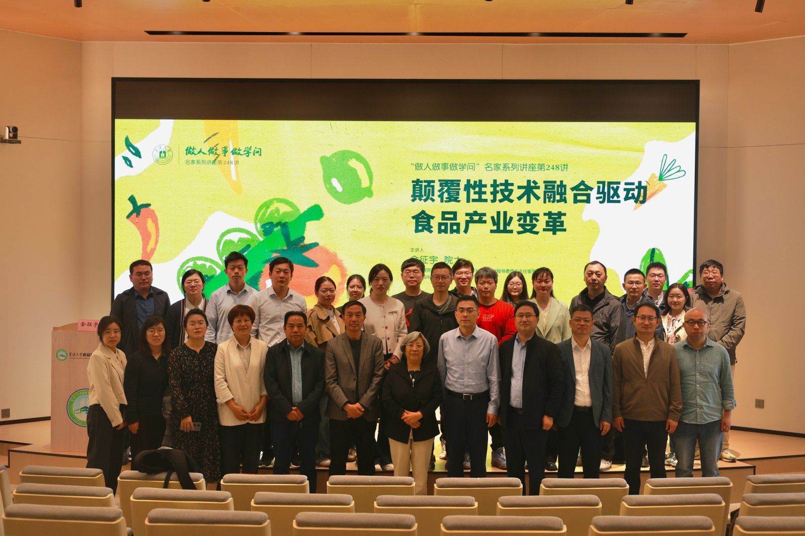 的建设发展给予充分肯定。他表示,尽管学院成立时间不长,却已在学科专业建设、人才培养和科研创新等方面成果斐然。师生们展现出的拼搏奋进精神尤为可贵,这种昂扬向上的劲头,正是推动学院不断向前的强劲动力。金征宇院士满怀期待地鼓励师生,继续保持这份热情,在食品科学领域深耕细作,书写更多精彩篇章,为祖国培育更多高素质专业人才。