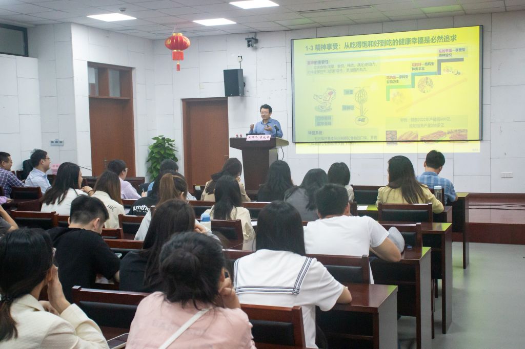师生做《未来食品与淀粉生物技术》的学术报告。执行院长邵兴锋教授主持报告会,参与报告会的主要为食药学院教师和研究生。