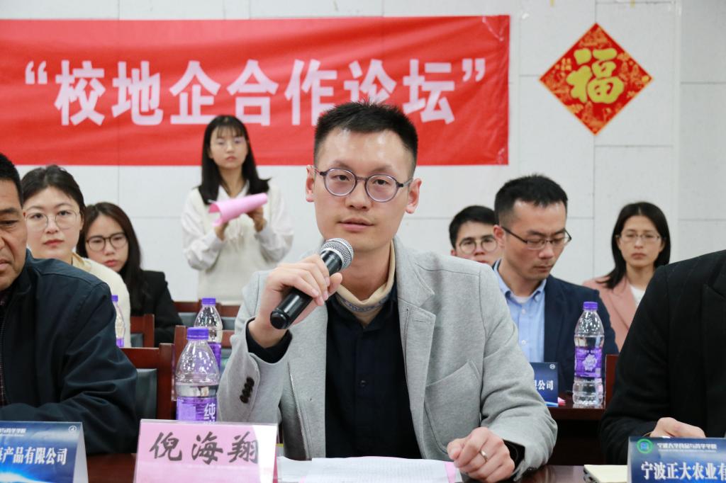 4月21日上午,由食品与药学学院主办的2021年度“青创营”之校地企合作论坛在宁大梅山校区举行。本次合作论坛有34家大中型企业参加。北仑区人才综合服务中心副主任倪海翔、食药学院党政领导、专任教师、优秀校友代表、2021届毕业生党员等约百余人参加了论坛。论坛有学院党委副书记谢果凰主持。