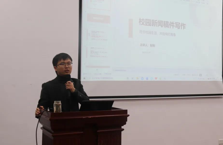 首先赵老师对“新闻”一词进行了解释,强调新闻需要注重时效性,同时提出要把握好新闻的五个要素。其次赵老师从五个方面指出校园新闻稿写作应掌握的方法:校园新闻标题的拟定、校园新闻要素的把握、校园新闻主题确定四大原则 、新闻段落的布局以及校园新闻照片的选取。最后赵老师通过不同种类新闻稿的范例,提出一系列的注意事项,如涉及到名称需写全、数字格式要统一规范、图片选择要走心等。