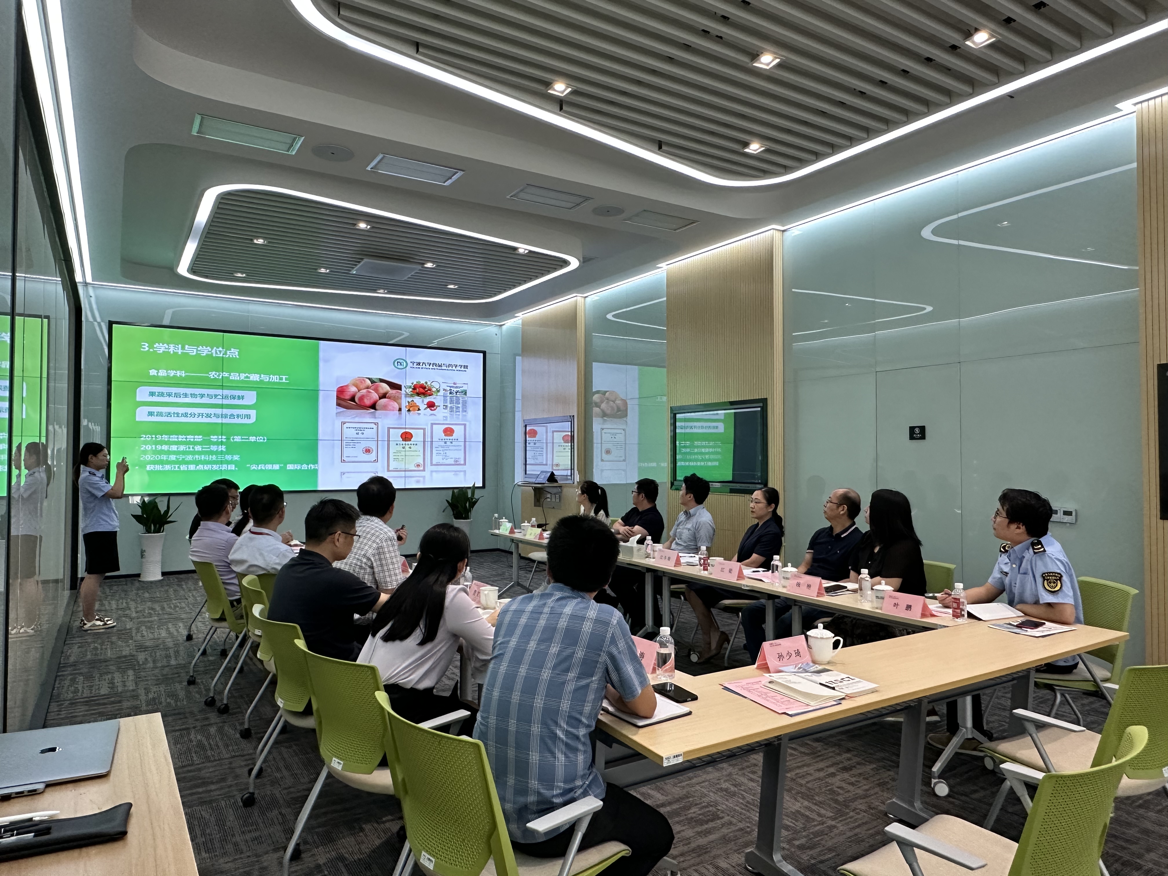 食品与药学学院愿同北仑区市场监督管理局一道扎实推进校地合作建设工作。院长邵兴锋就学院发展历程、专业概况、师资优势、学生特点、校地合作的展望、合作方向以及需要的支持等方面进行了介绍与说明,提出了“优势互补、互惠互利、多赢发展”的合作愿景。