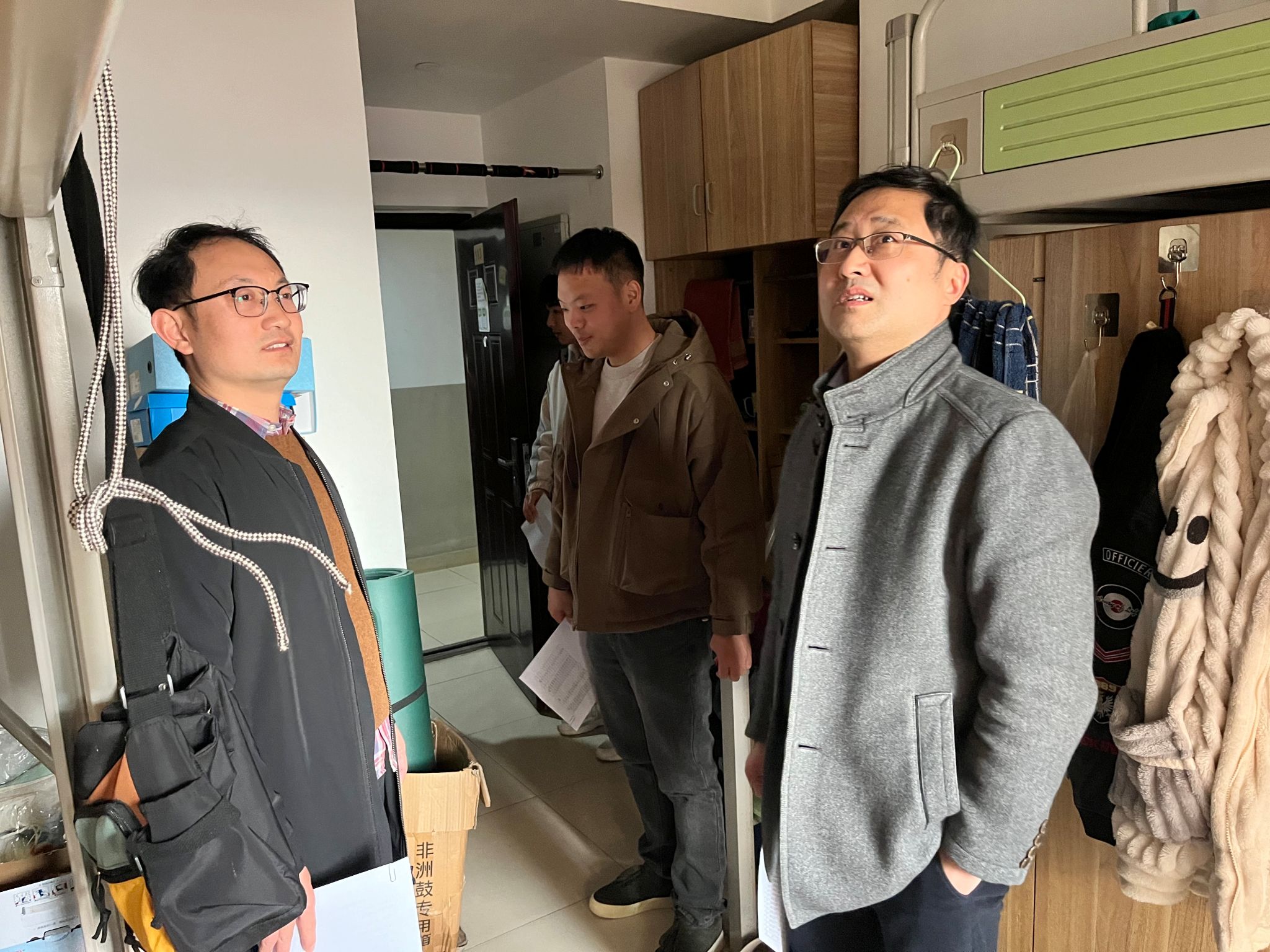 检查过程中,学院着力排查学生宿舍安全隐患,提醒同学们增强安全意识,规范用电行为明令禁止使用大功率电器。走访过程中,老师们与同学亲密交流,了解同学们近期学习、生活等方面的情况,提醒同学们注重寝室卫生,共同营造良好的生活环境,同时也要提高安全防范意识,加强校园安全防范意识