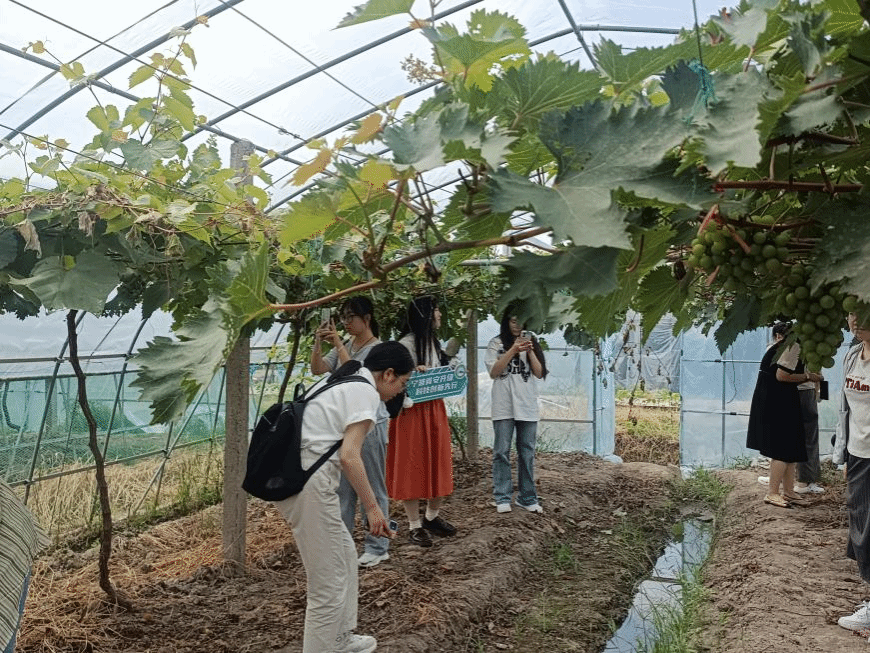 图3 实践队员参观葡萄种植大棚