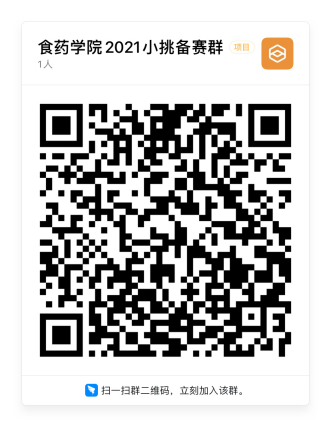 (二)即日起至9月30日为学院项目排摸阶段,请预申报本次竞赛的师生加入“食药学院2021小挑备赛群”(钉钉群),相关通知问题等将在群内发布。